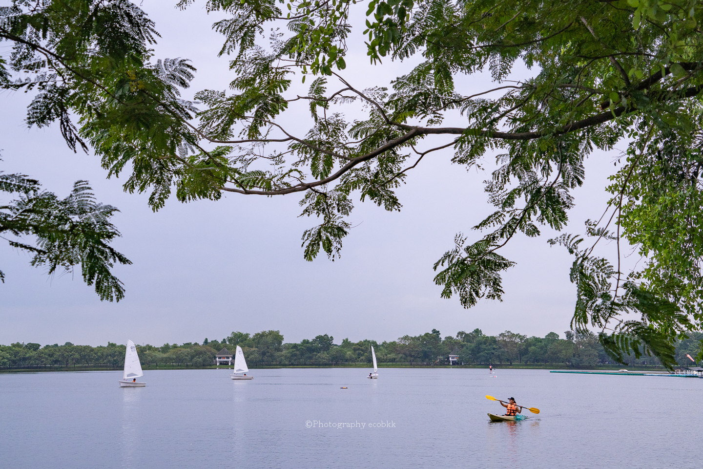 ラマ9世公園については、2019年10月16日付の記事(「花が美しいタイ・バンコクの「ラマ9世公園」へ行こう! | 地球の歩き方」)で紹介していますので、割愛しますが、ノンボン湖公園は、大変広く、日本人にはあまりなじみのない公園だと思いますが、お散歩しているタイ人や走りに来ているタイ人がたくさんいる公園でした。17時前であれば、登録者は、この公園の見所になっているカヌーやヨット乗りも体験できるようですが、筆者が気づいた時は既に17時を過ぎていたので、登録方法についての詳細は確認できませんでしたが、広い公園内でこの風景を見られて、長いタイ・バンコク生活の中で見られなかった風景を今回あらたに見られてよかったです。