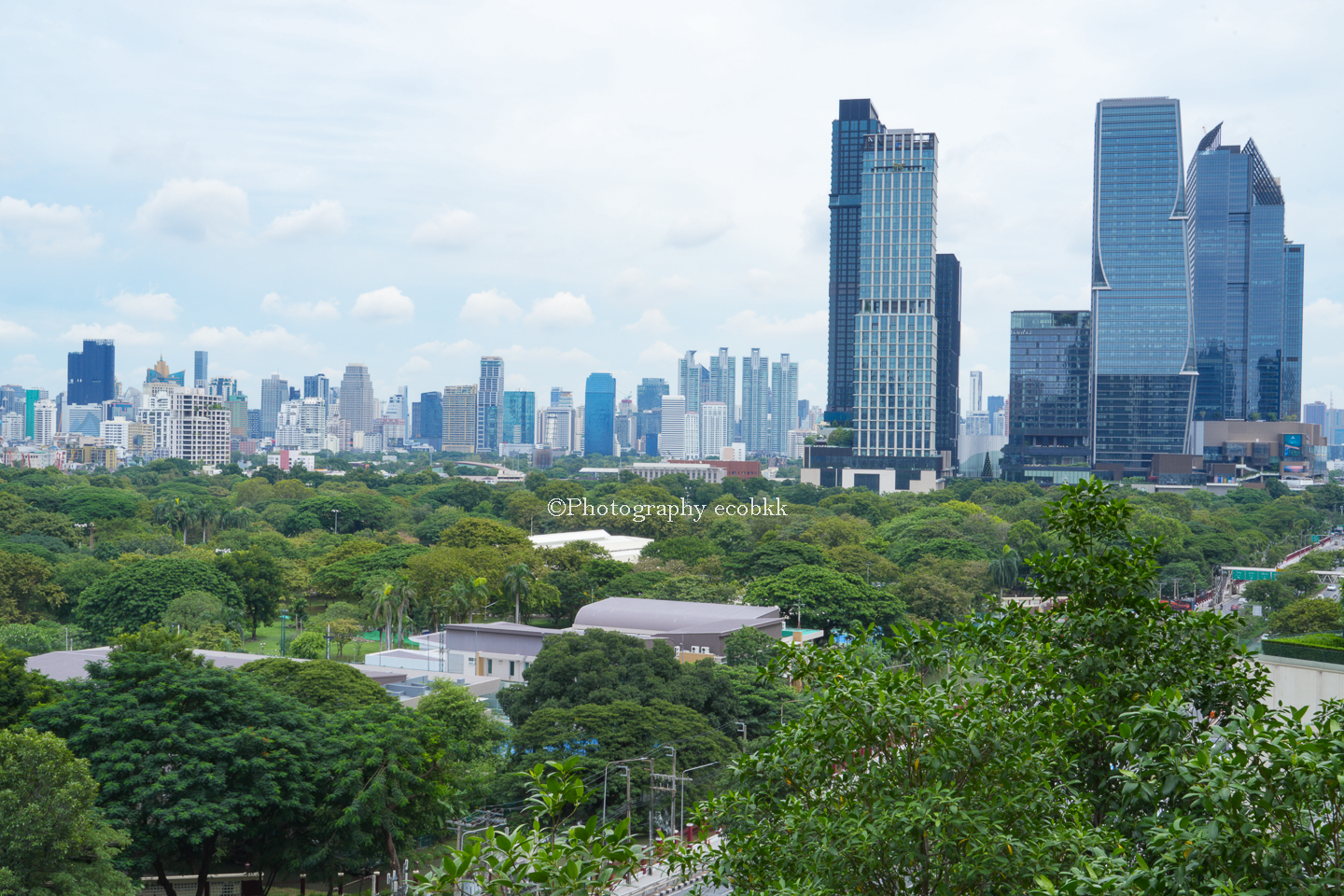 デュシット・アルン公園(Dusit Arun Park/สวนดุสิตอรุณ)では、バンコクらしいビル群、電車や道路、緑豊かなルンピニー公園を一望することができます。6階の高さですが、無料で、ルーフトップに来たような眺めが見られるので、人気のオアシス空間となっています。バンコクには、たくさんの魅力的な都市公園がありますが、同じ建物内にすぐに涼めるカフェもあるのが最大の魅力ですね。