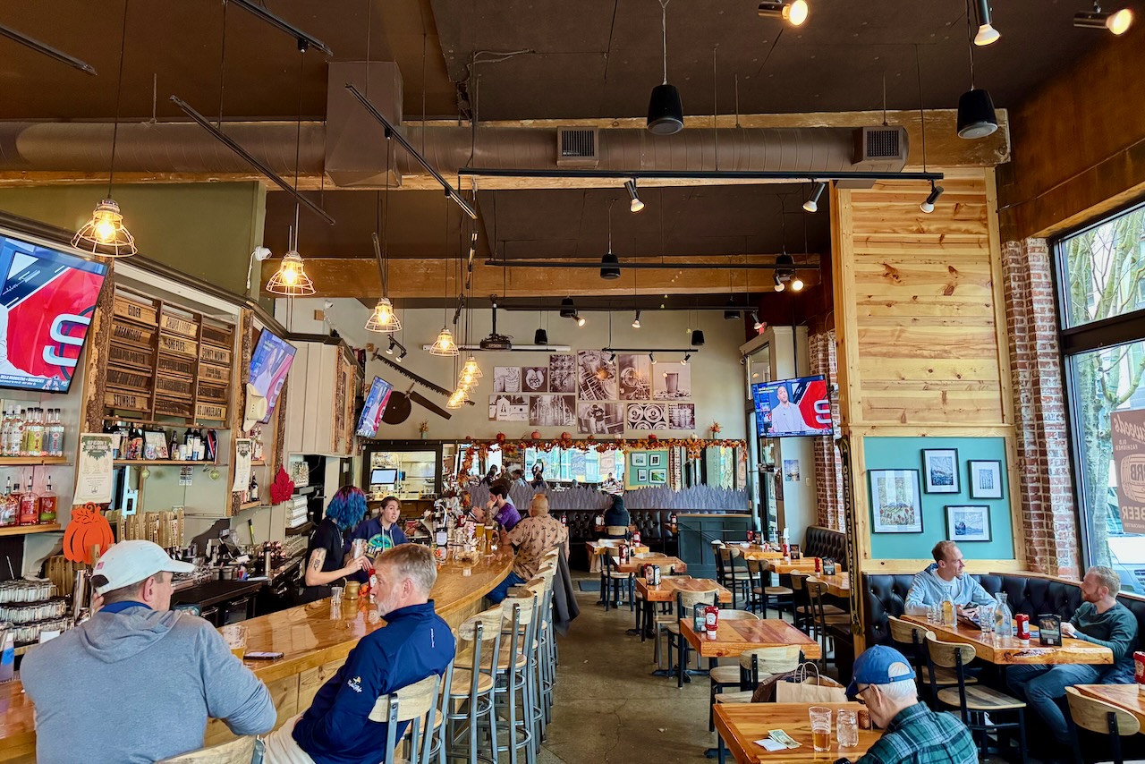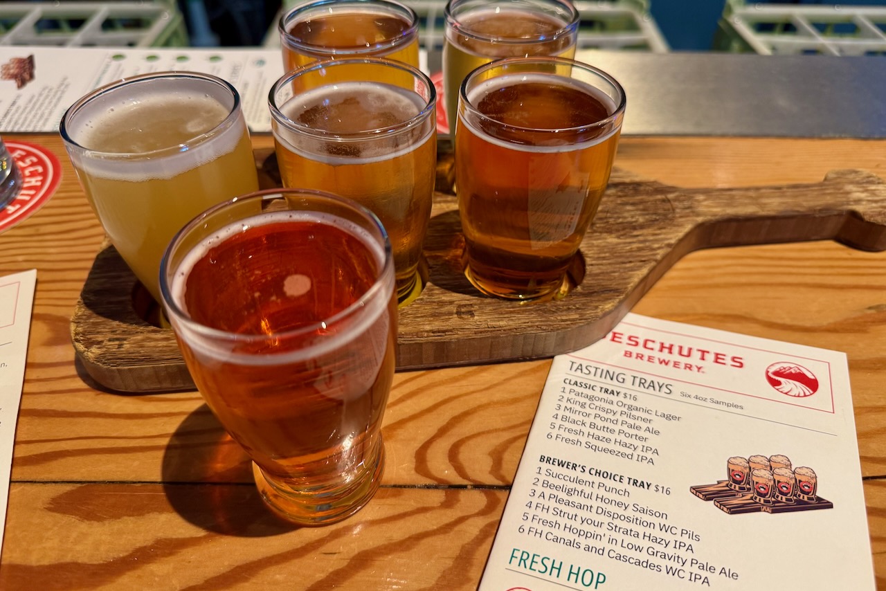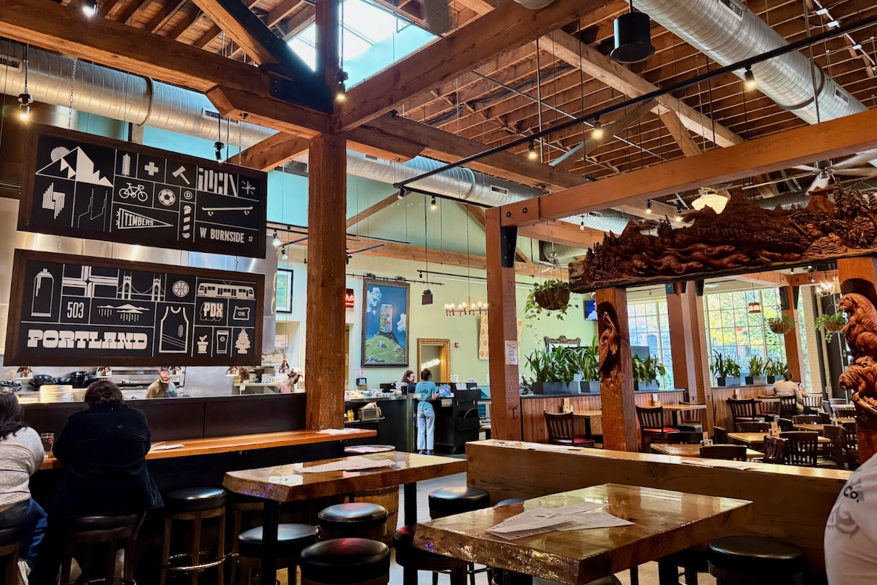 パール・ディストリクトの中心で、まず足が向いたのは デシューツ・ブルワリー(Deschutes Brewery)。オレゴンを代表する名門ブルワリーだけれど、重厚さよりも “静かな安定感” が伝わってきます。超人気地区のど真ん中なのにギラギラしたところがなく、元倉庫街だけあって天井も高く、ポートランドらしく木の温もりが漂いスタッフがゆったりとして迎えてくれる。カウンター席なら並ばず入れるのも嬉しいポイント。ひとり旅の手始めとして、これ以上心強い場所はないと思いました。