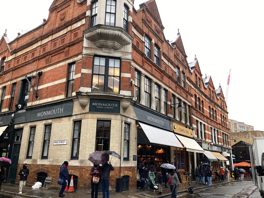 レストラン「エリオッツ」があるのは、バラマーケットを囲む通りのひとつストーニー・ストリート(Stoney Street)12番地。人気の珈琲店「マンモス・コーヒー」もすぐ近くという便利なロケーションです。