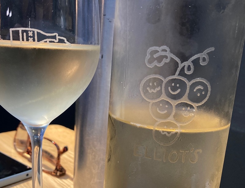 ボトルの方はブドウの絵とElliott’sの店名だけど、グラスには「うぃ~酔っちゃったぁ」と言うように目がバッテンになって倒れたボトルのイラストが微笑ましい。