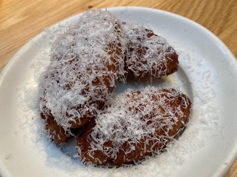 トーストの上には軽い食感の発酵バターがたっぷりで、実に「ワインの友」。いっぽうチーズパフは円やかなチーズをふんだんに使い、軽くて甘くない一口ドーナツみたいな美味しさでした。