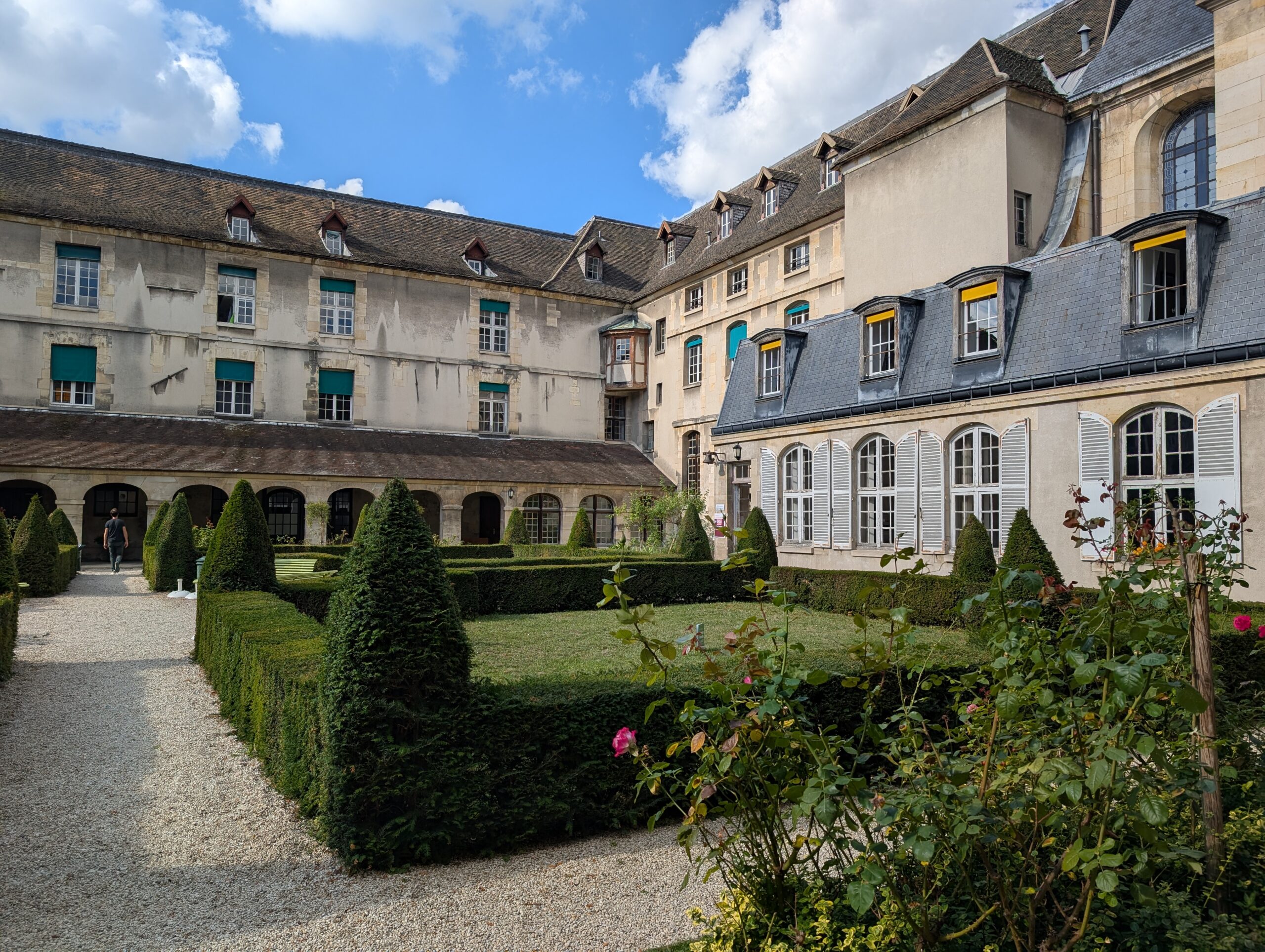 外へ出ると、中庭に妊婦さんたちがいました。大きなお腹を抱えながら、パートナーと穏やかに話し込んでいます。平日の日中にこうして寄り添える時間をつくれるのは、フランスらしい光景。笑い声が一定のリズムで重なり、その場だけ柔らかな膜に包まれているようでした。