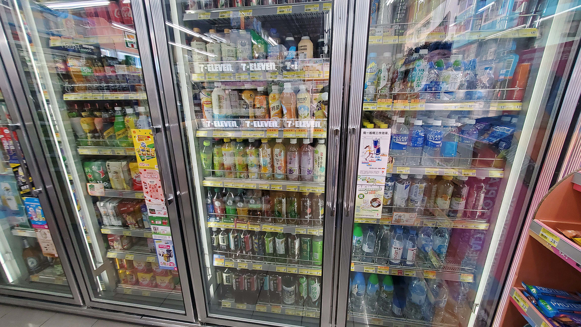 ドリンク類も同じで、コーラといった定番から日本のソフトドリンクやお茶もいっぱい売られています。気を付けたい点を”強いていえば”レベルですが、香港のお茶には、商品によってははちみつ入りのお茶というのがあり非常に甘いです。はちみつ入りなどは蜂の絵がラベル描かれているのでわかりやすいと思いますが、飲んだ瞬間に甘いことにびっくりする人もいると思うので、そこは気を付けるといいでしょう。アルコールでいえば、ビールも外国製から日本のビールまで幅広く売られています。