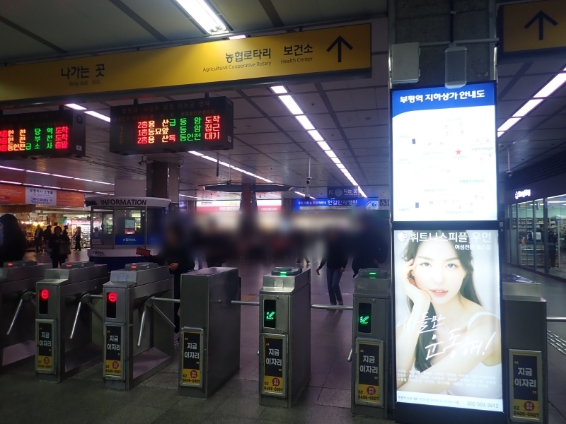 アクセス:ソウル地下鉄1号線、仁川1号線 富平(プピョン)駅 改札出てすぐ