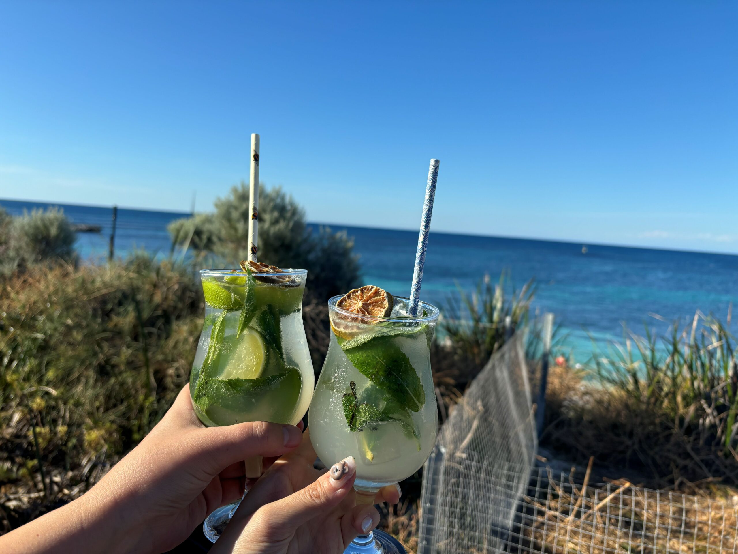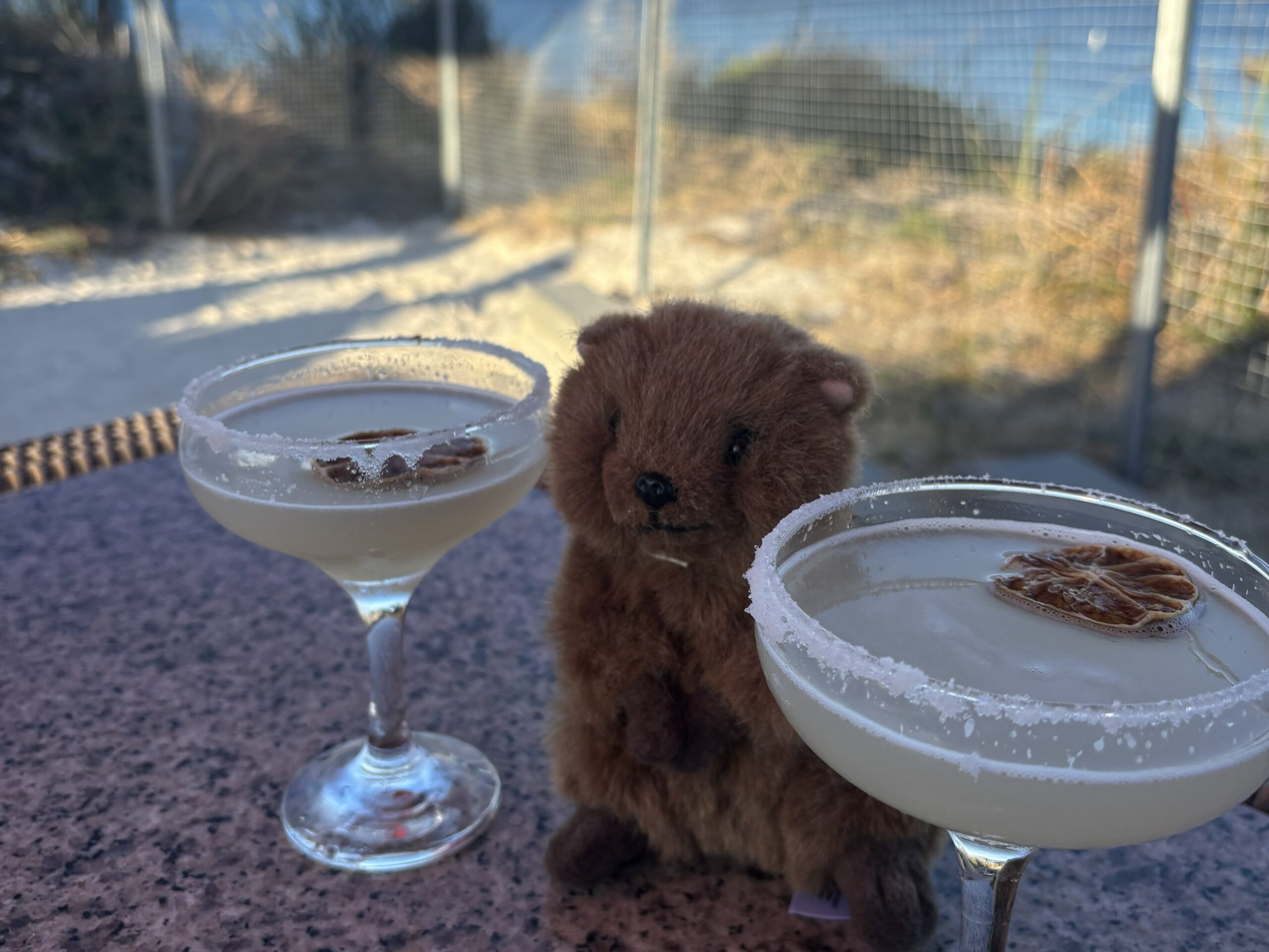 平日の16〜18時限定で、Pinky’sでは嬉しいハッピーアワーが開催されています。ビール、ワイン、カクテルが少しお得に楽しめるので、今回はカクテルを2杯いただきました。海風を感じながら飲む一杯は格別です。