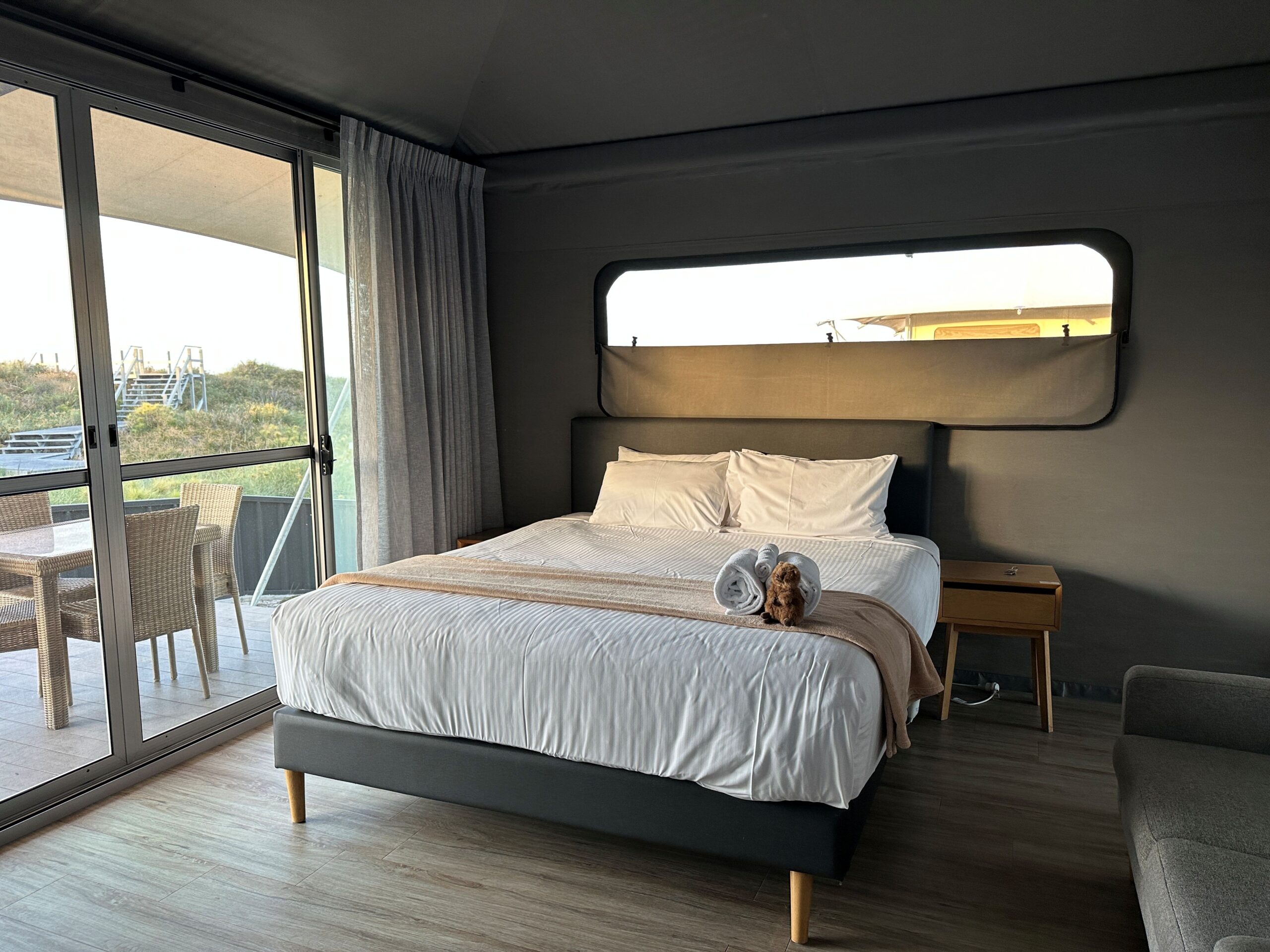 テントは環境に優しいECO仕様で、あえてテレビは置かれていません。波の音や風の音を感じながら、ロットネスト島らしい島時間を過ごせるのが魅力です。