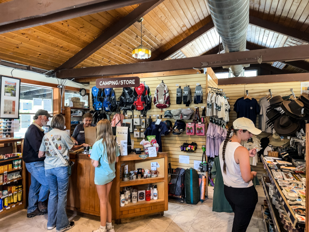 料金所を過ぎると、左手にビジターセンターがあります。すぐ脇には人気のキャンプ場もあり、ビジターセンターの中には、売店もあり、食料も購入可能です。