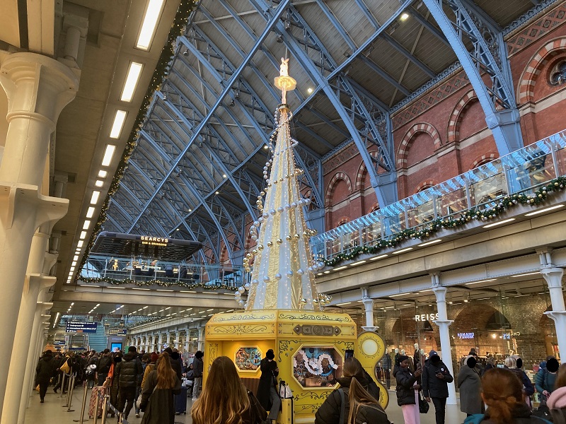 ロンドンのセントパンクラス駅の2025年クリスマス・シーズンは、この小児病院への支援を呼び掛けるツリーが話題を呼んでいますよ!