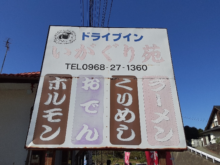 今日は、熊本県北部にある菊池市(きくちし)から「菊池渓谷」へ向かう国道387号線沿いにある地元はもちろんのこと県外者からも愛されるドライブイン「いがぐり苑」をご紹介します。