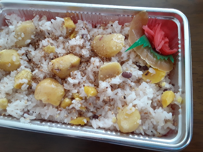 ラーメンを食べていると次々と「栗赤飯」を買い求める客が来店する様子を見て人気の高さを実感しました。もちもち食感とごろごろ入った甘い栗がおいしい!! 買い求める人が多いわけだと納得の逸品。栗赤飯は、季節限定メニューで午前中には売り切れてしまうそうなので予約をされることをオススメします。