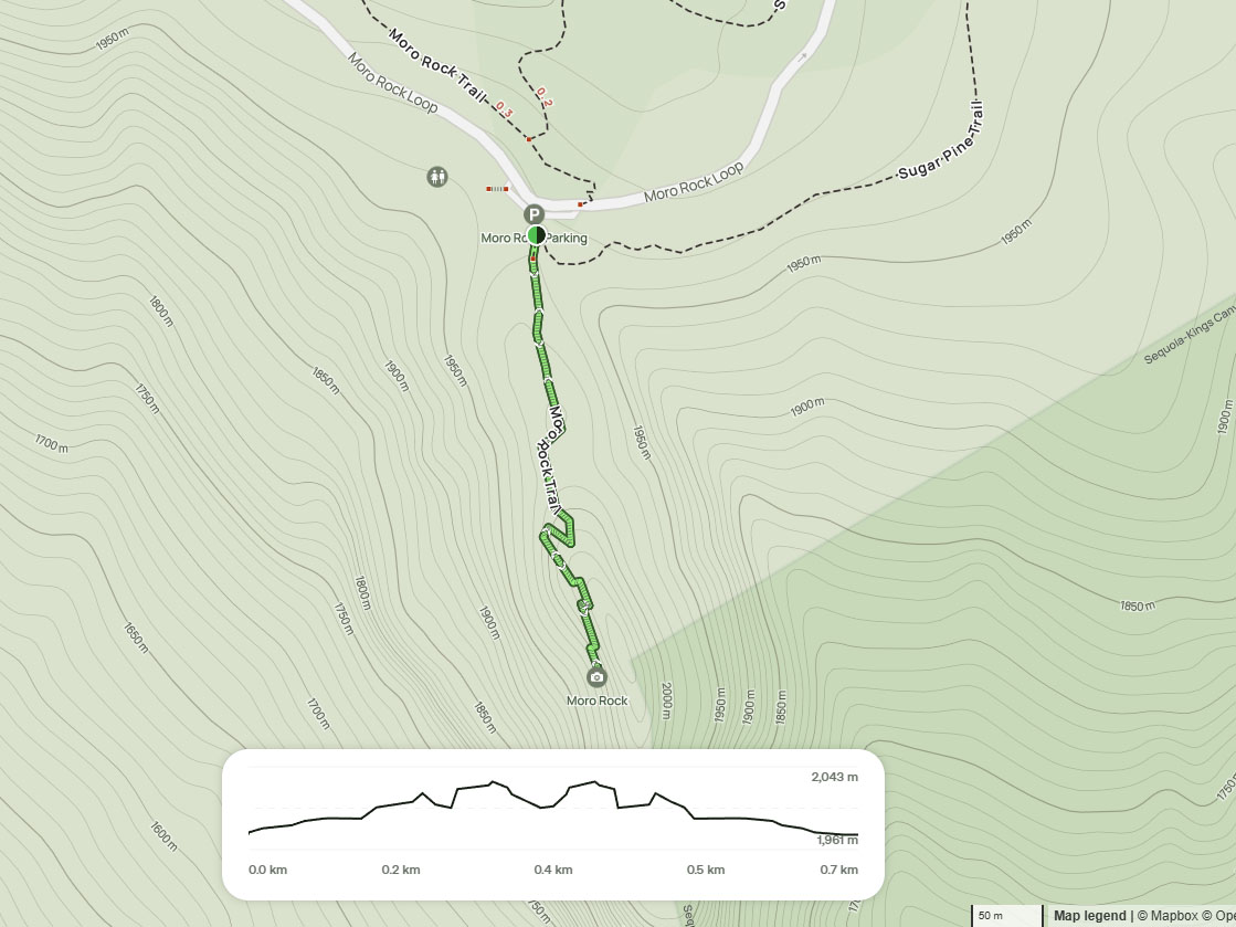 Giant Forest museumの南にあるセコイア国立公園随一の花崗岩で出来た展望台です。セコイア国立公園の南半分が一望できます。往復1Km,標高差70m、往復30分です。