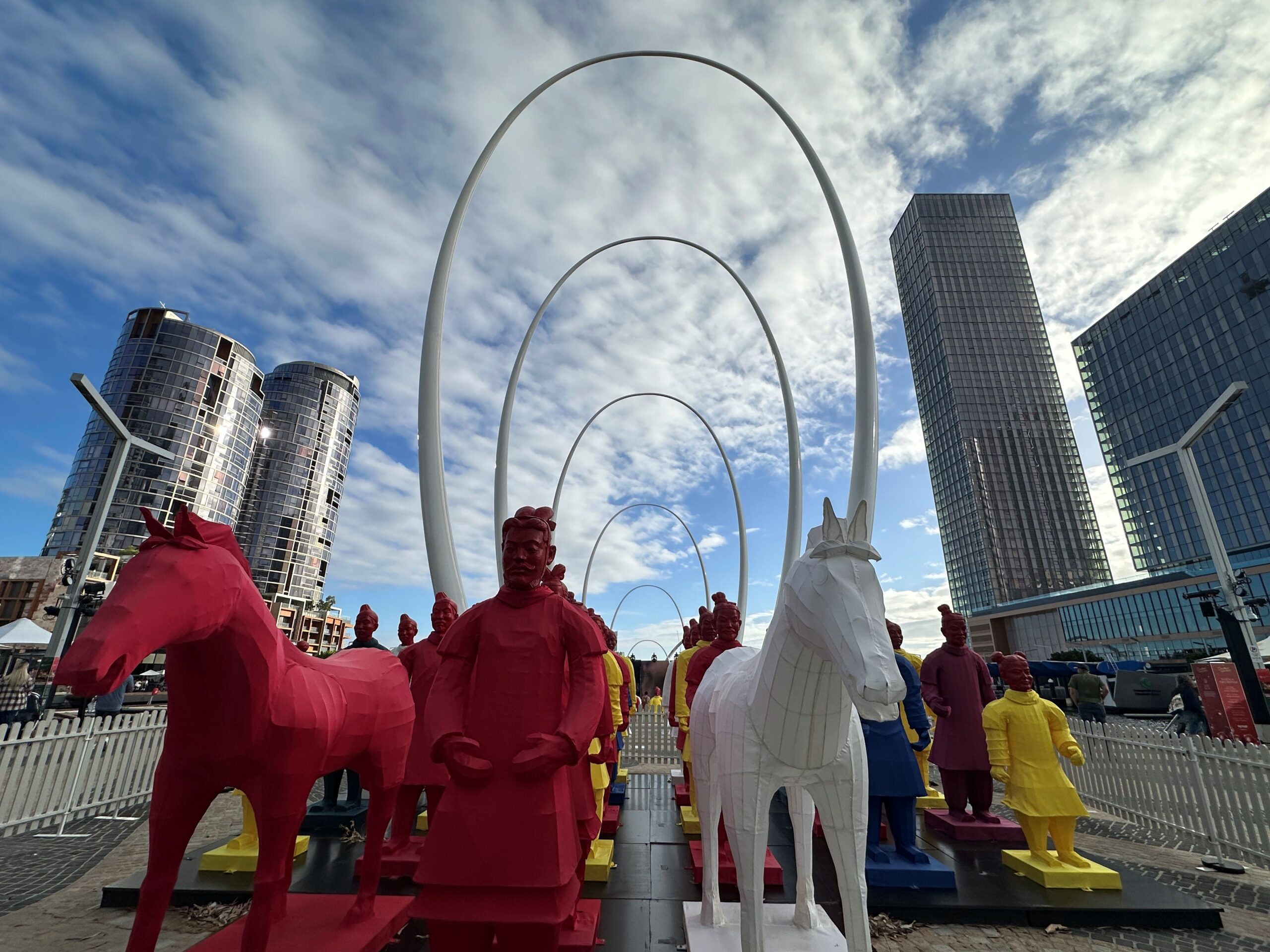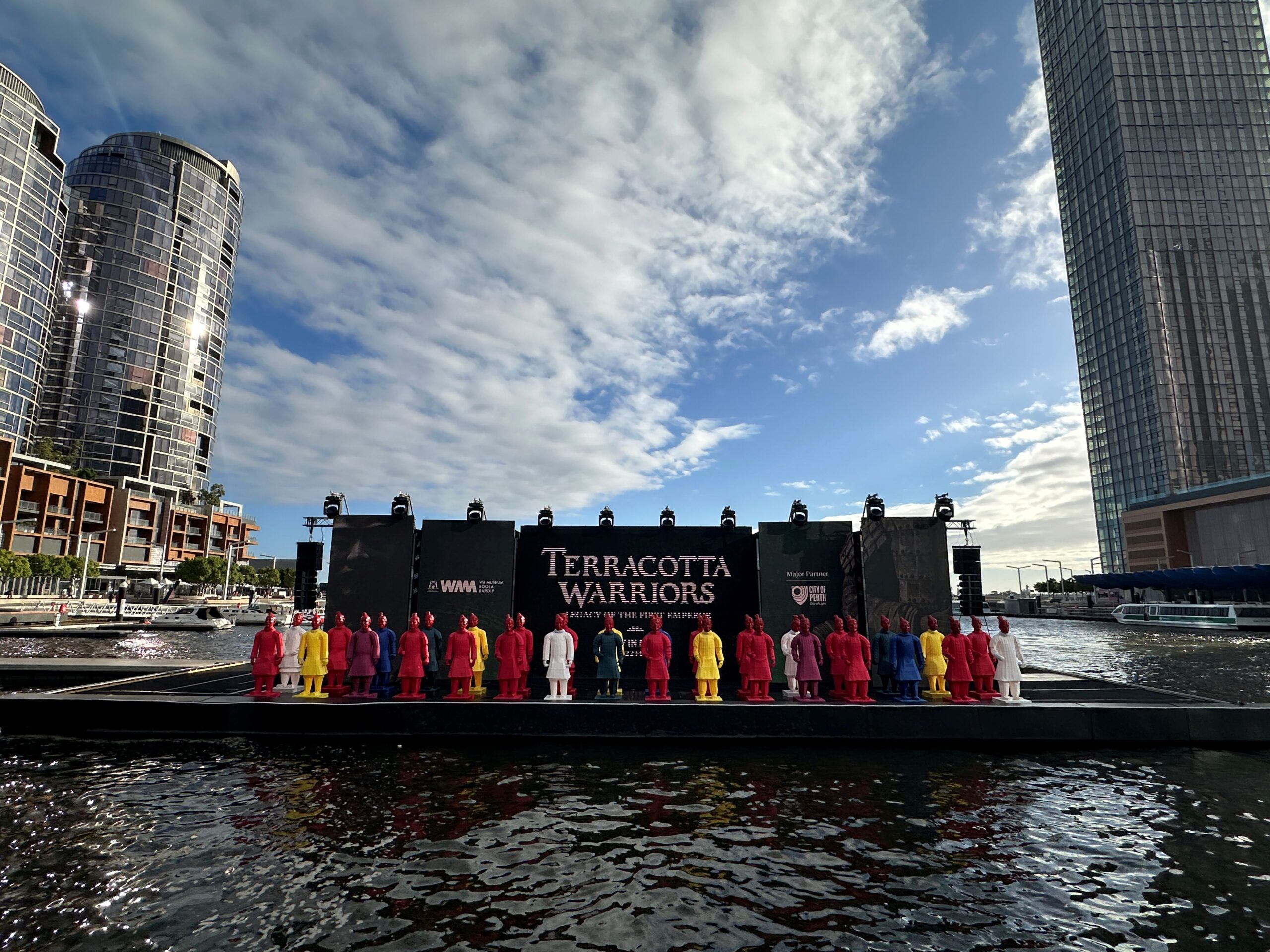 展示に合わせ、11月からはパース市内の各スポットにもTerracotta Warrior像が登場しています。現在はElizabeth Quayに数体が展示され、近くには紹介映像が流れるモニターも設置されています。11月初旬にはForrest Chaseにも姿を見せていたため、今後も予告なく場所が移動する可能性があり、街歩き中に出会えたらちょっと嬉しいサプライズです。