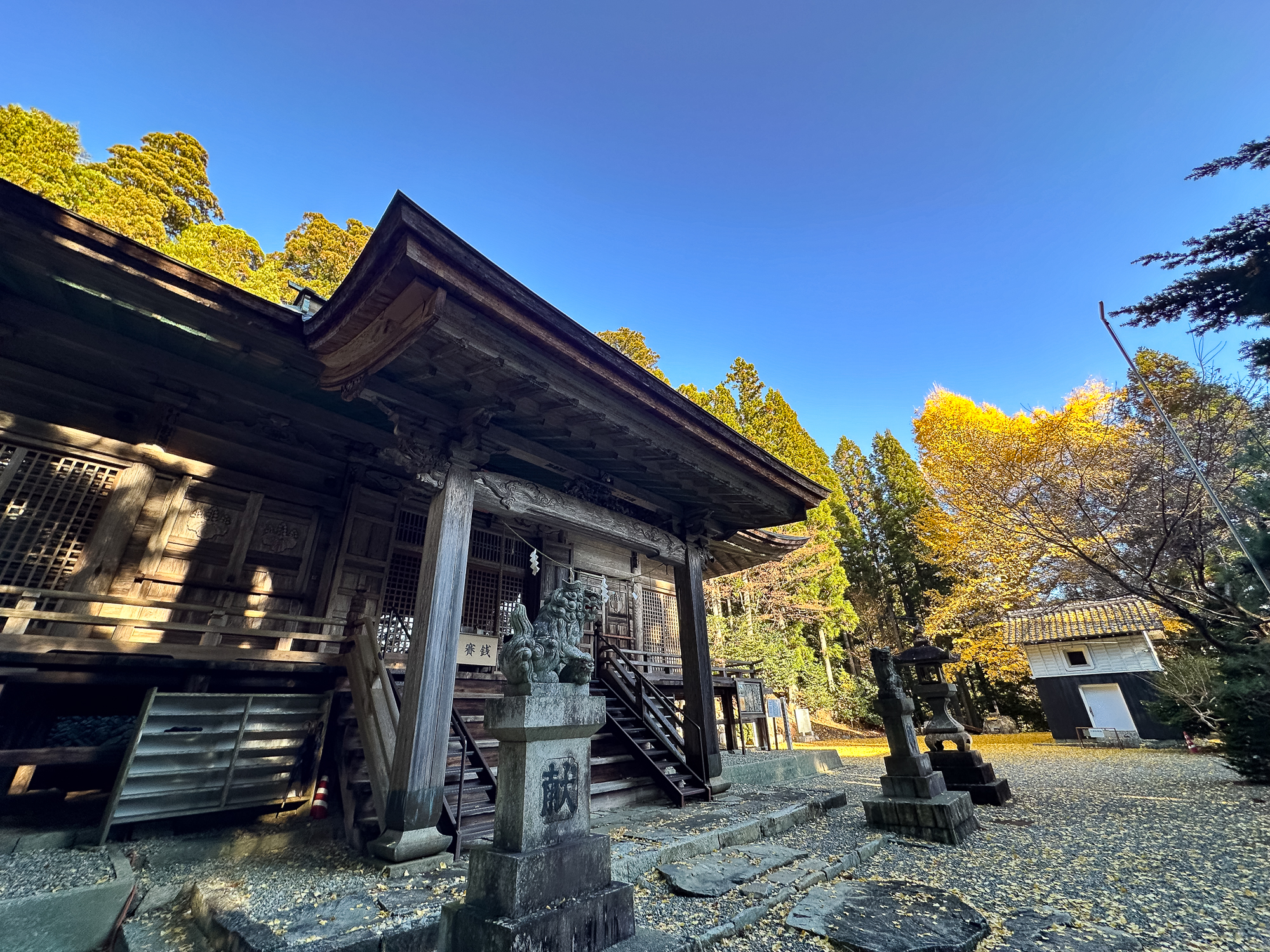 それでも、拝殿周囲の銀杏がつくる黄色い絨毯や、晩秋の彩りは圧倒的な美しさ。落ち葉を踏む音がはっきり聞こえるほどの静けさで、山の神域に漂う神々しさを体いっぱいに感じられました。
