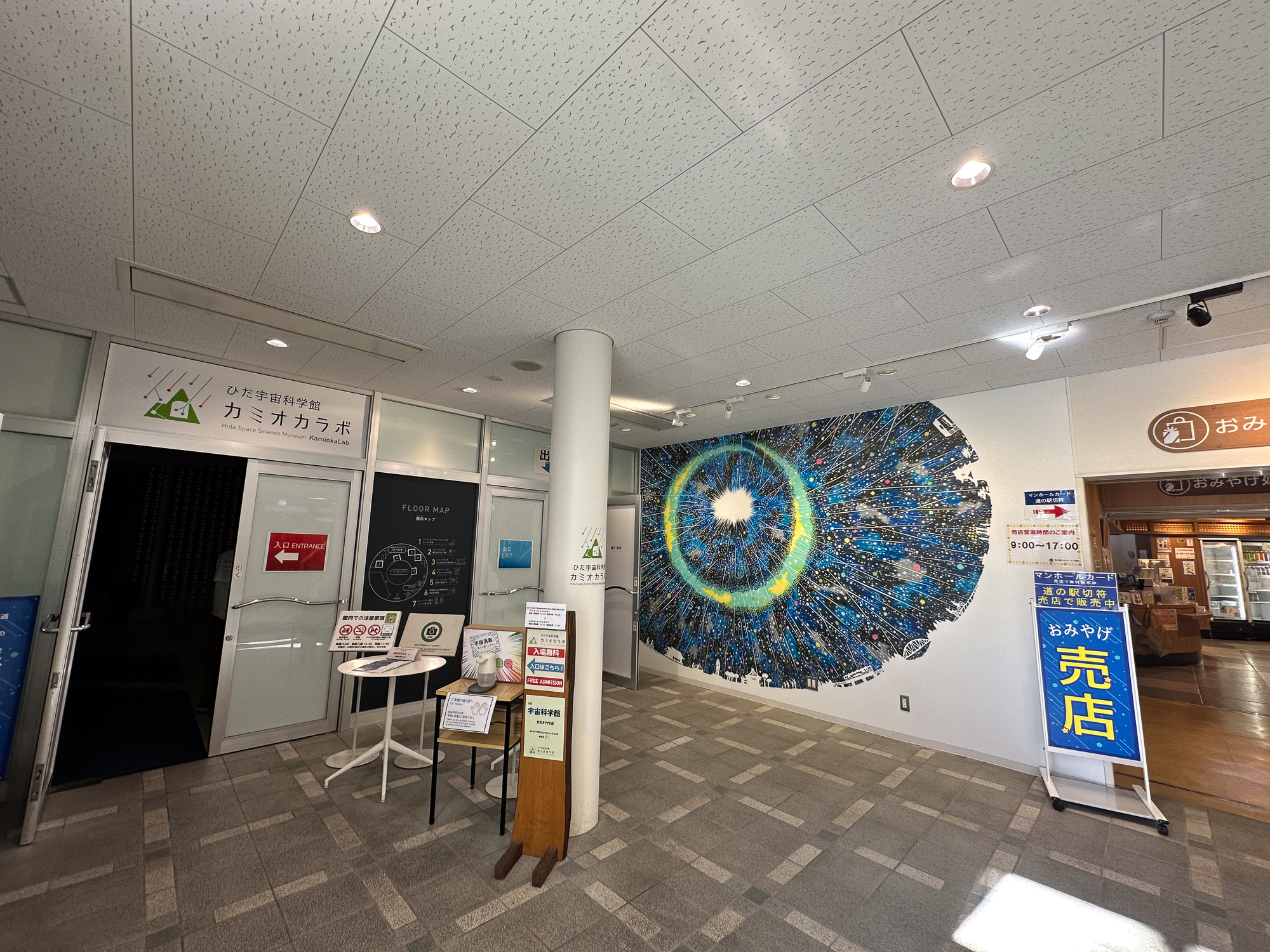 道の駅に併設されている、宇宙物理学研究を紹介する「ひだ宇宙科学館カミオカラボ」は、大型スクリーンの映像やミニゲームなどで、宇宙の不思議に楽しく触れられます。お子さん連れでも楽しめる、ちょっとしたミュージアムのような空間です。