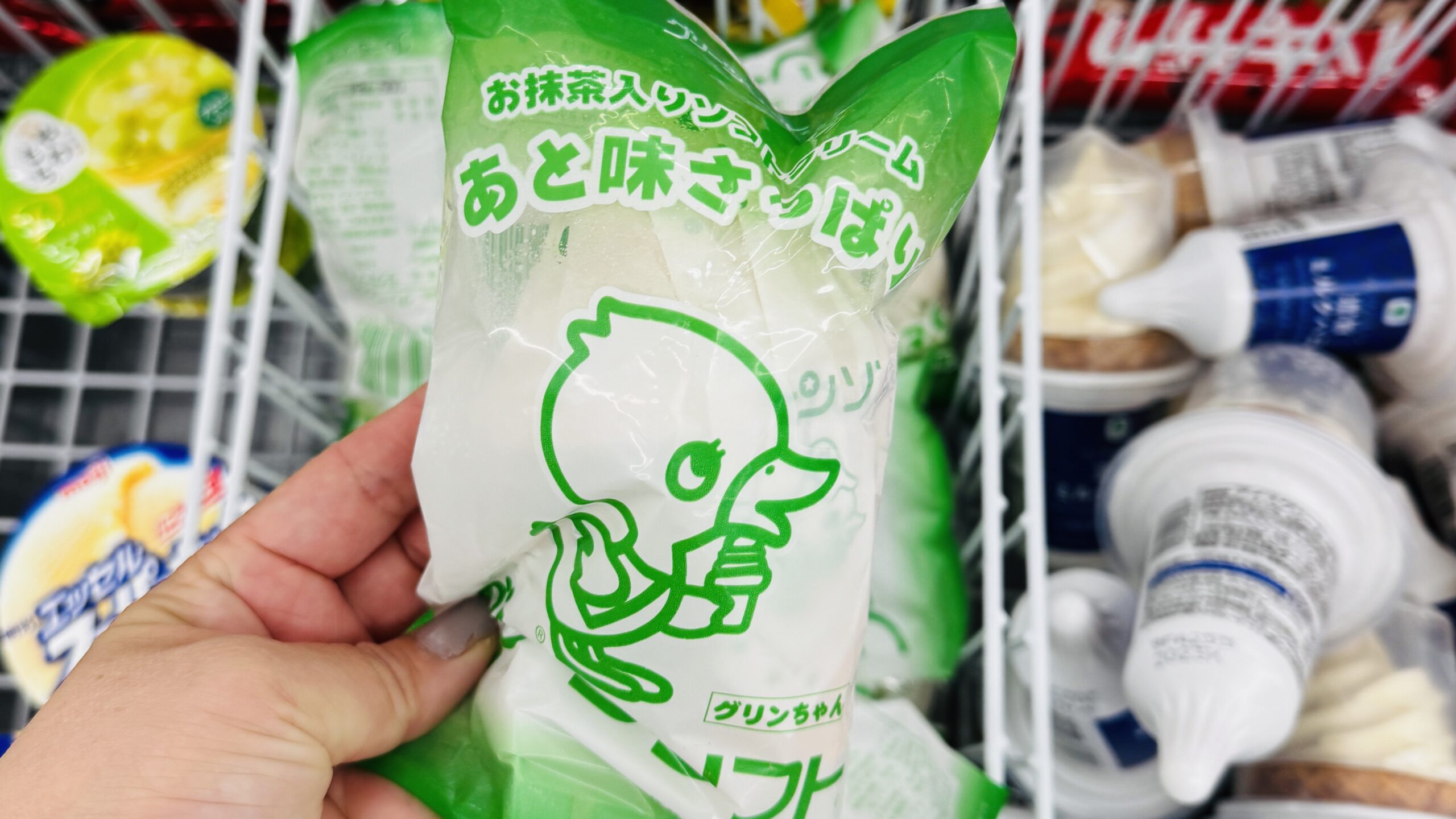 せっかくなら和歌山らしいものを買いたいな!ということで帰りには梅干し関連のねり梅やほし梅、あら川の桃ゼリーを購入してみました。そして、ひよこのグリンちゃんが可愛いグリーンソフトにコンビニで出会いました。和歌山限定ということで即購入して実食。抹茶味なのにさっぱり!ご当地グルメはやっぱり楽しいですね。
