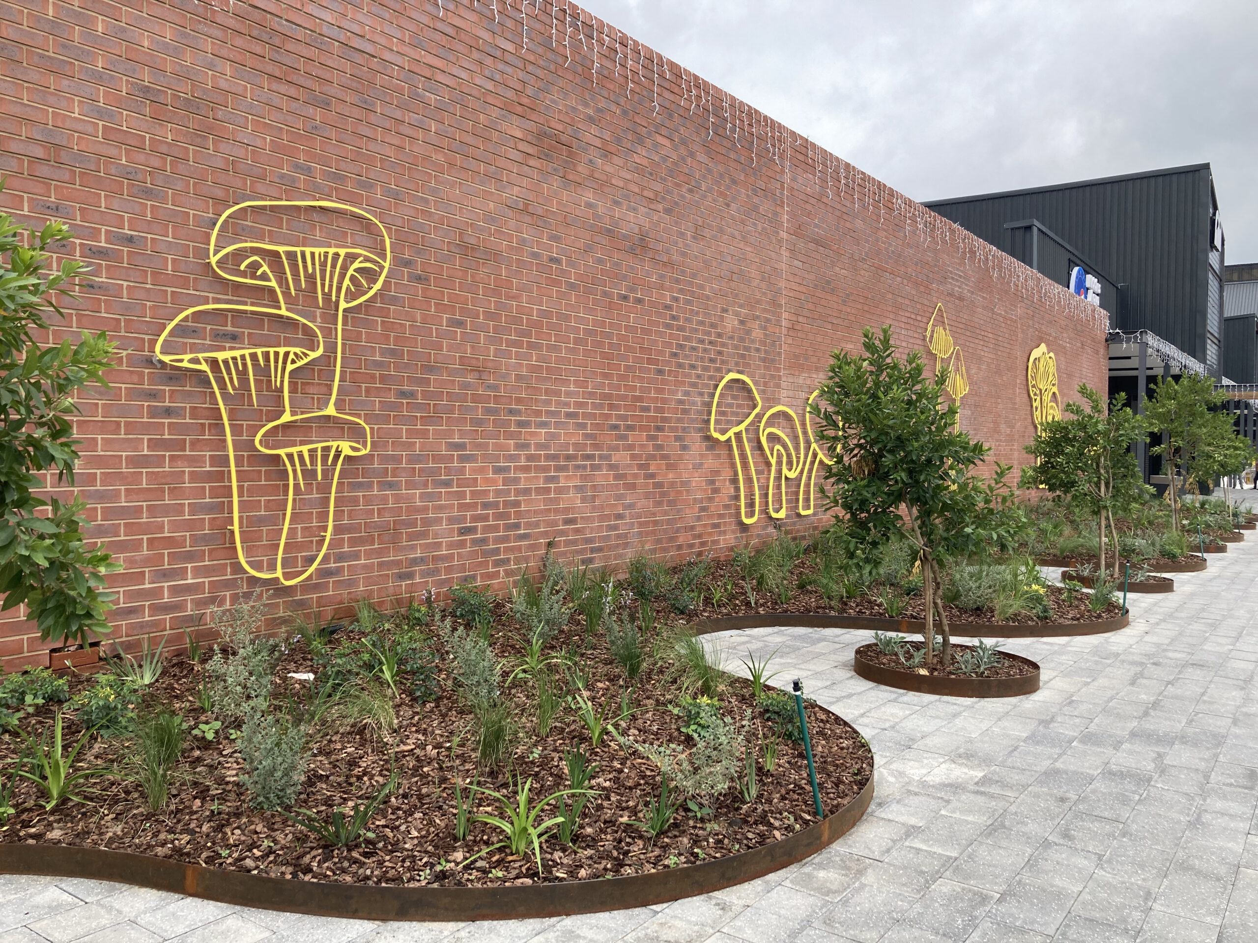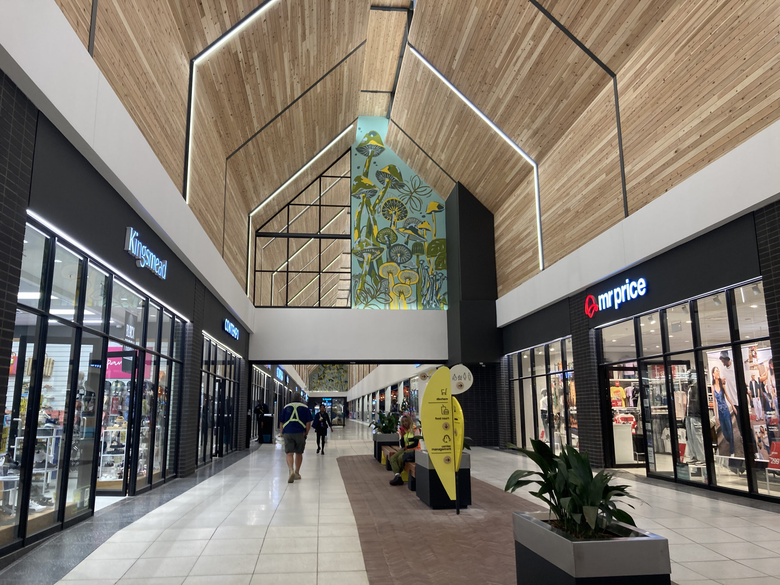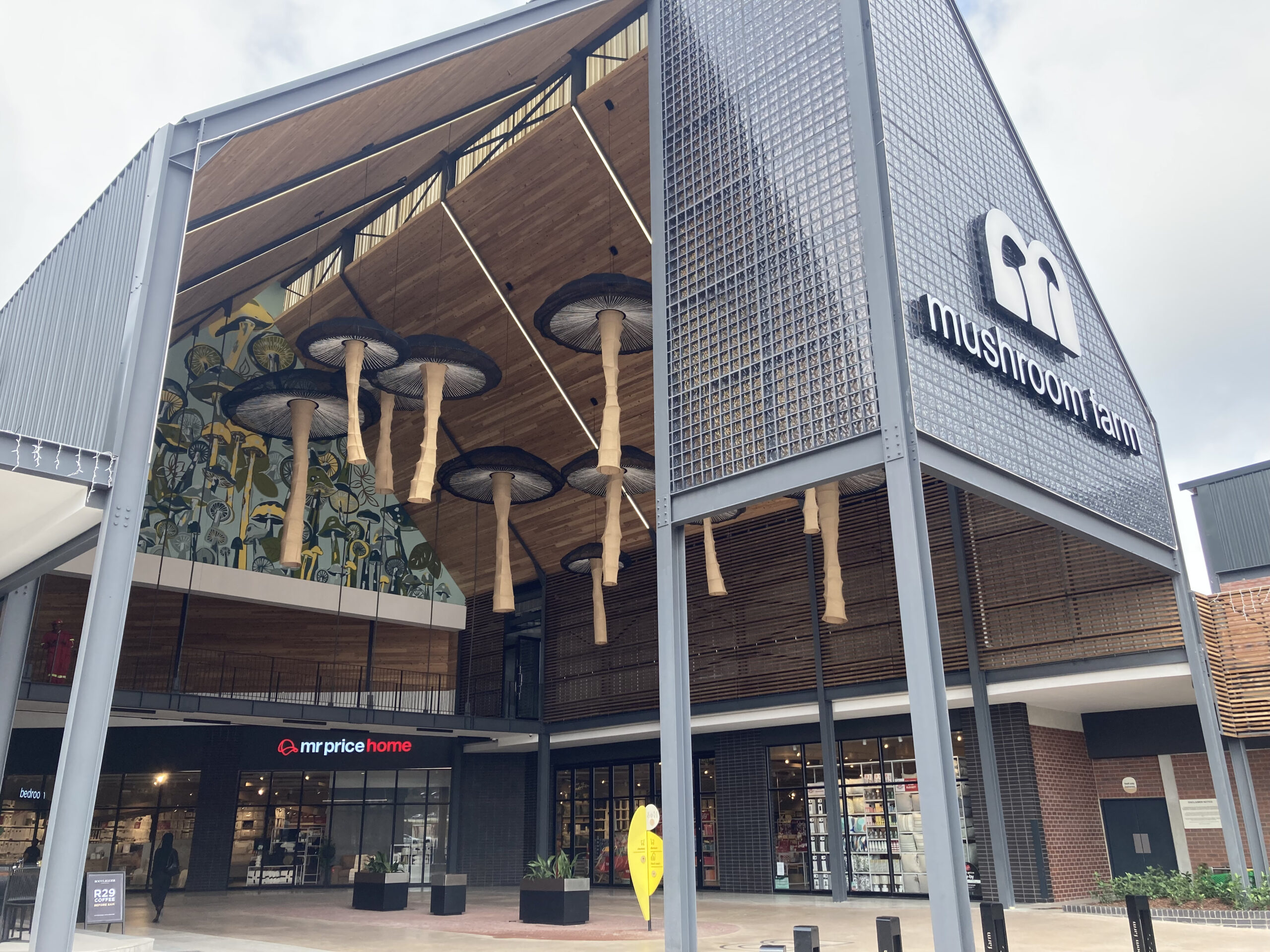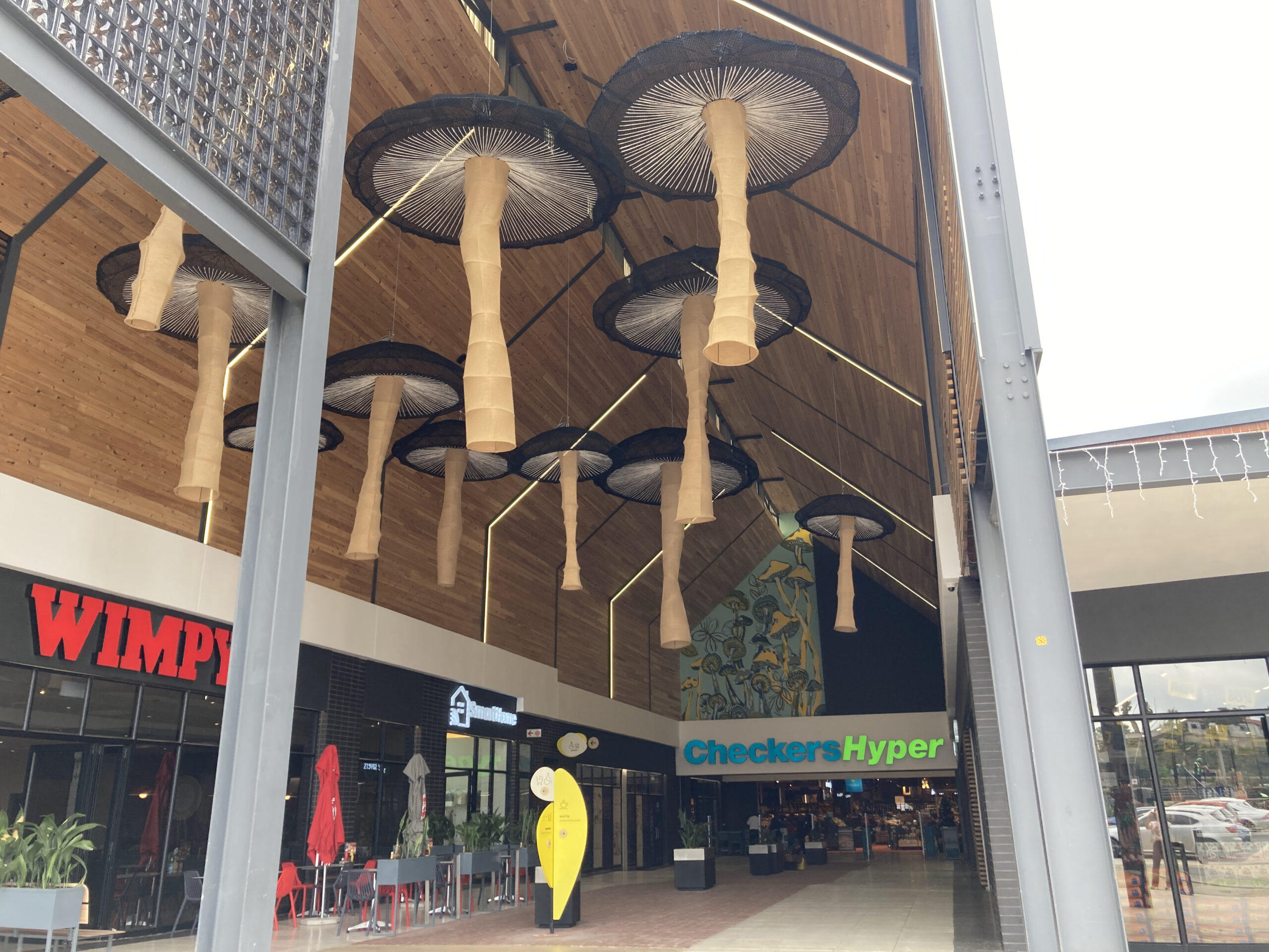 2025年10月にオープンしたばかりのマッシュルームショッピングセンターをご紹介します。見た目がかなり特徴的なこちらのモール、天井からは巨大なキノコのオブジェがぶら下がり、壁にはさまざまな種類のキノコの説明がキノコ図鑑のように書かれています。場所はヨハネスブルグの中心地から車で15分程にあるミッドランドという地域です。