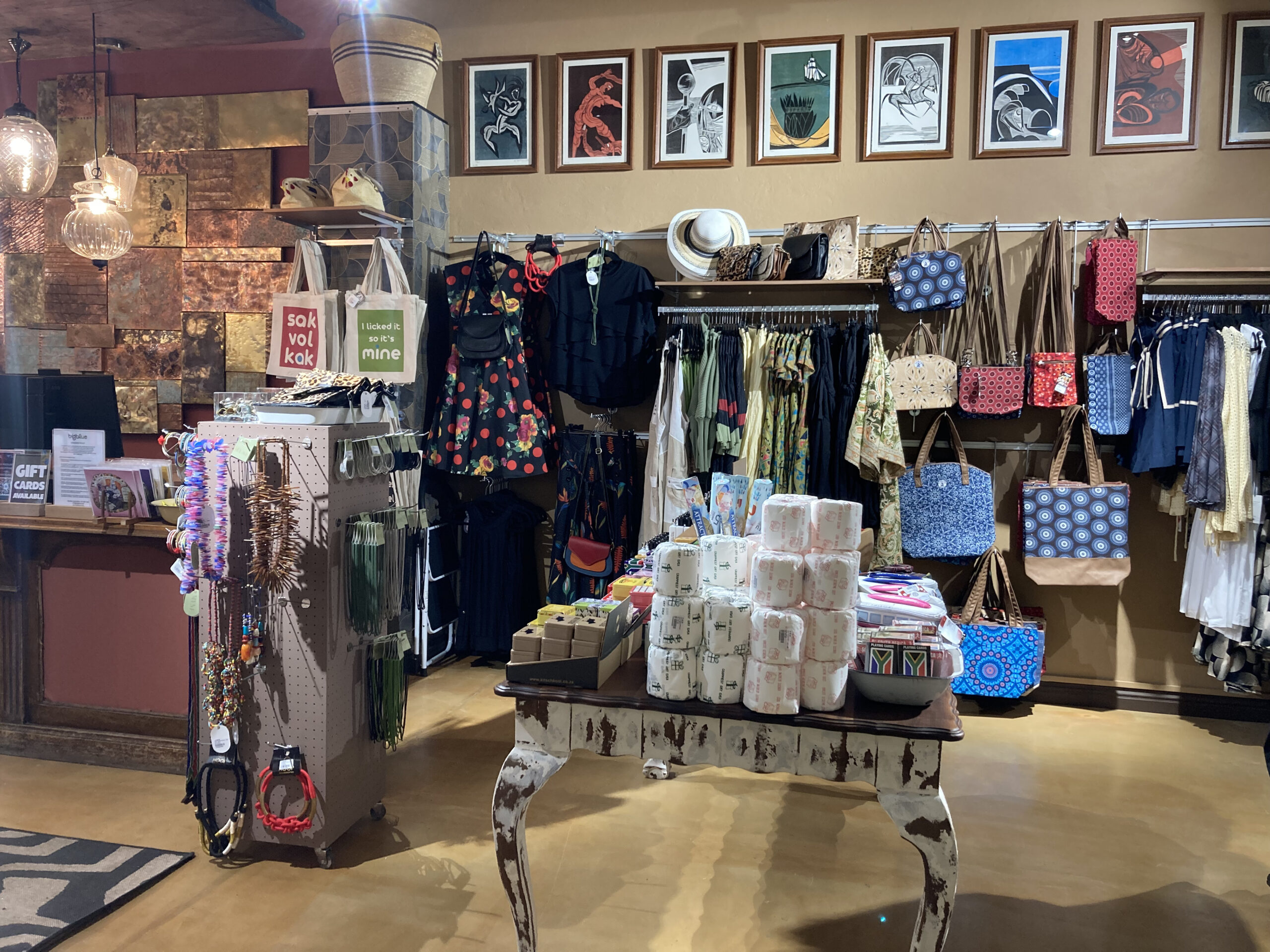 店舗のおすすめはBIG BULEです。南アフリカらしい、アフリカ布を使ったファッションアイテムや雑貨などが揃っています。