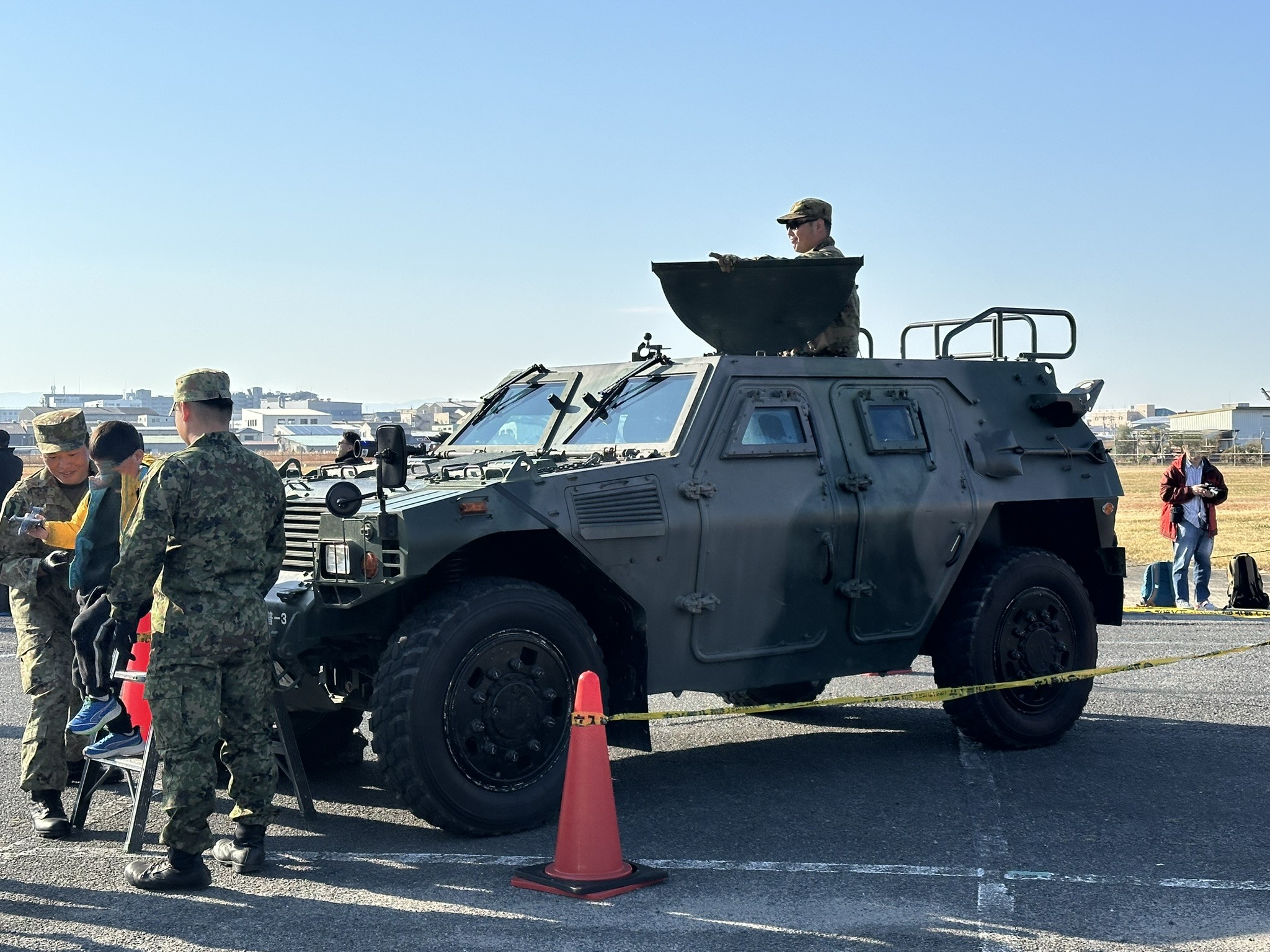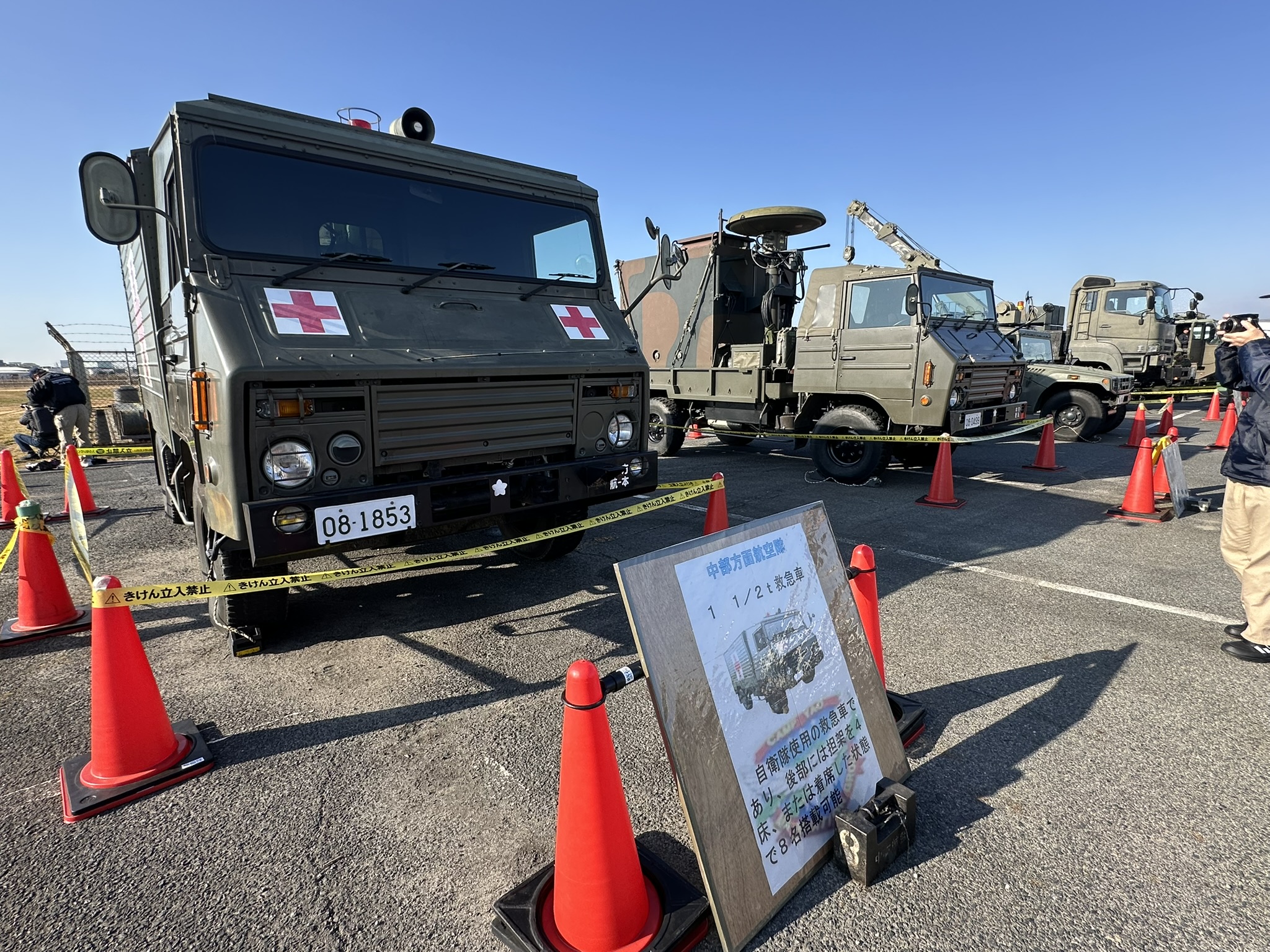 会場では、軽装甲機動車(LAV)や1/2t救急車、73式大型トラック、03式中距離地対空誘導弾発射機など、多彩な装備品が展示されました。
