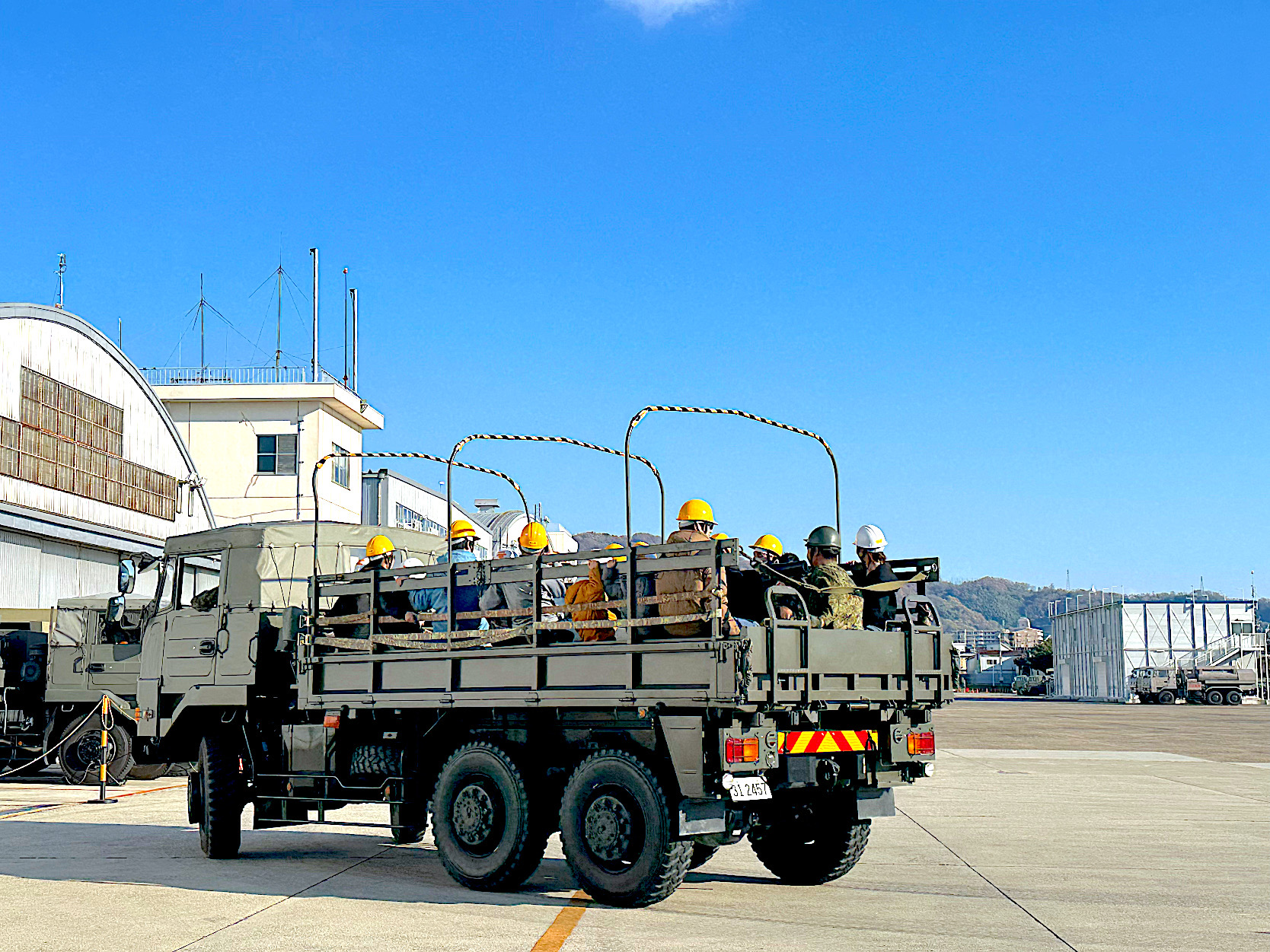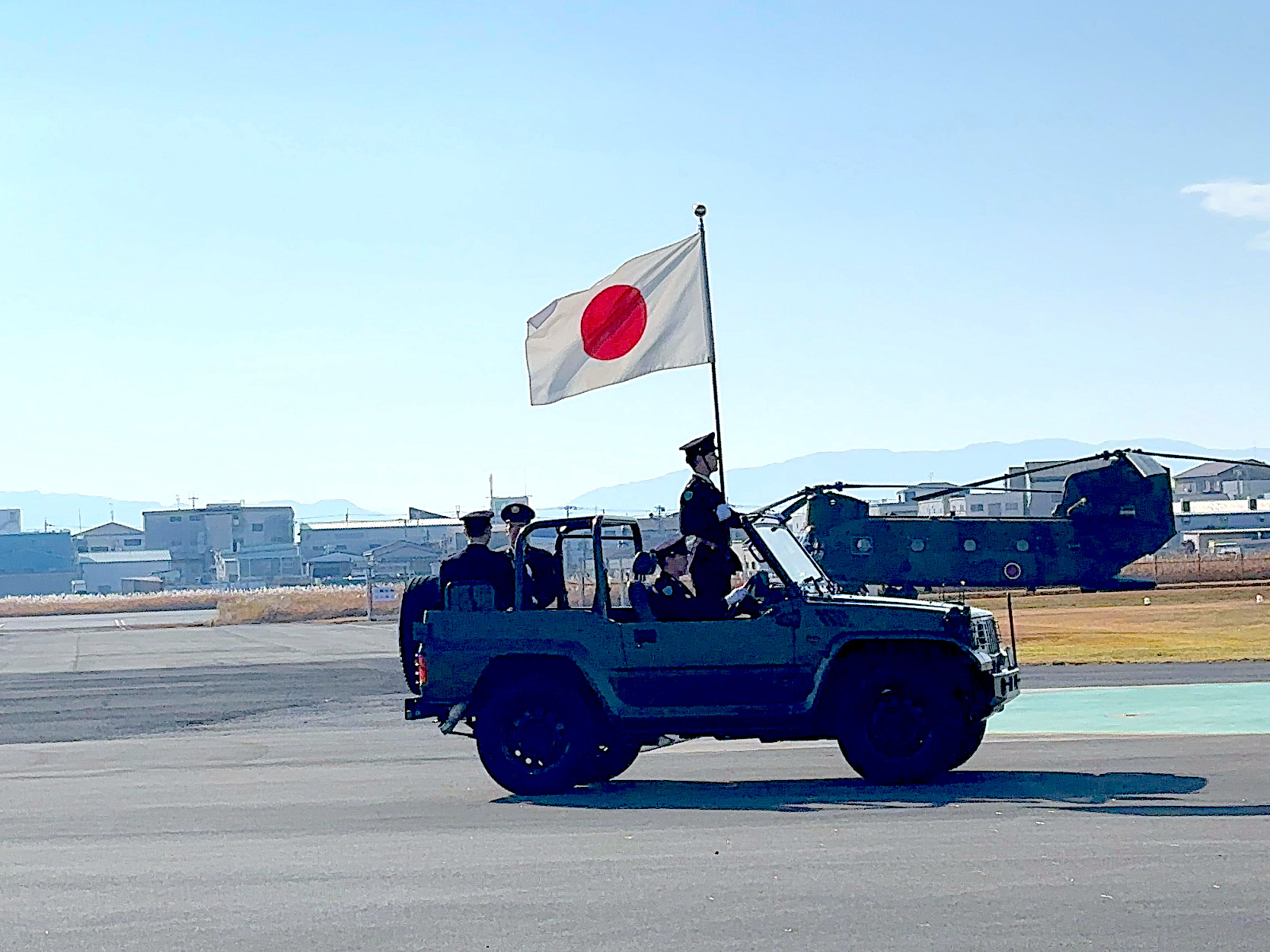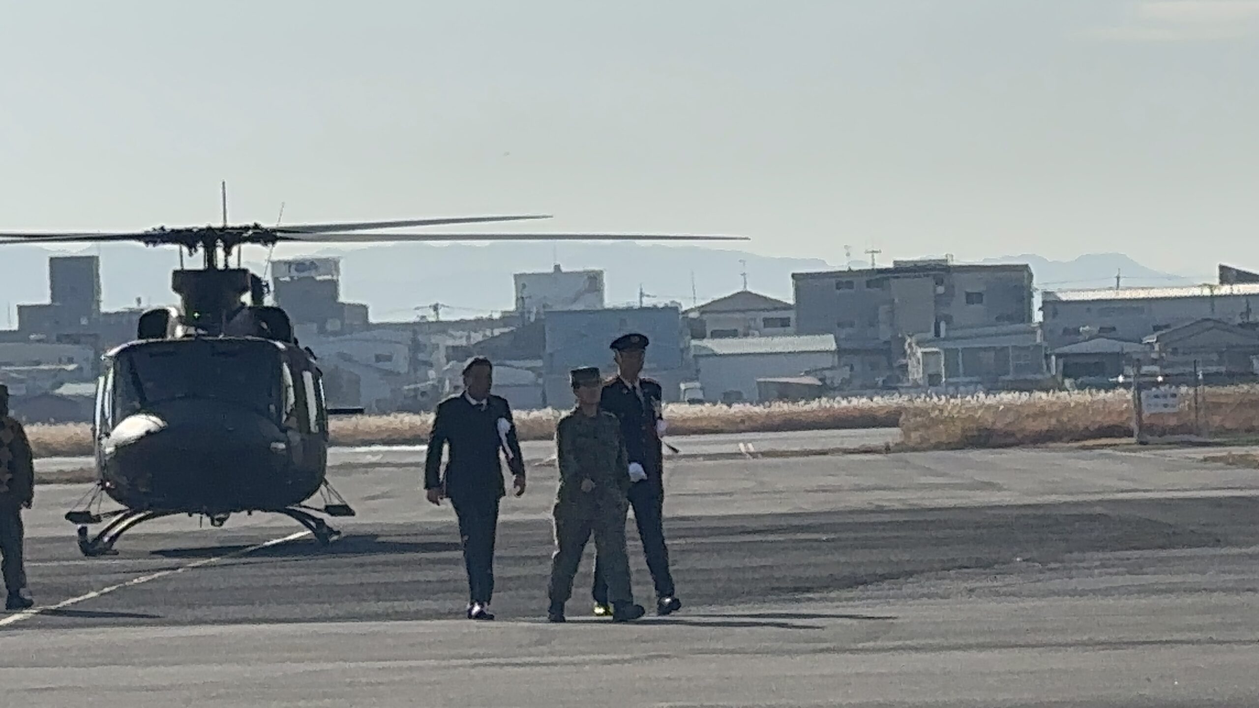 ローター音が響く中、司令が機体を降り立つと、会場の空気は一気に引き締まります。