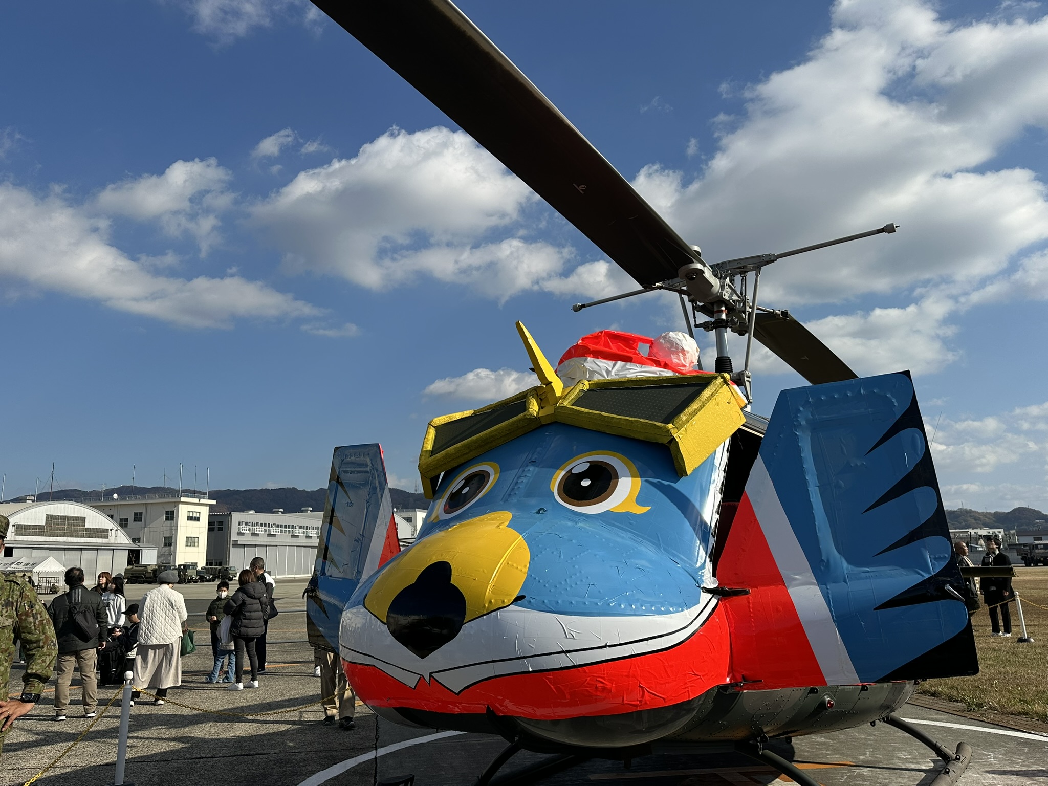 午後には、八尾駐屯地公式キャラクター「ふぁる」が描かれた特別塗装のUH-1Hも登場。