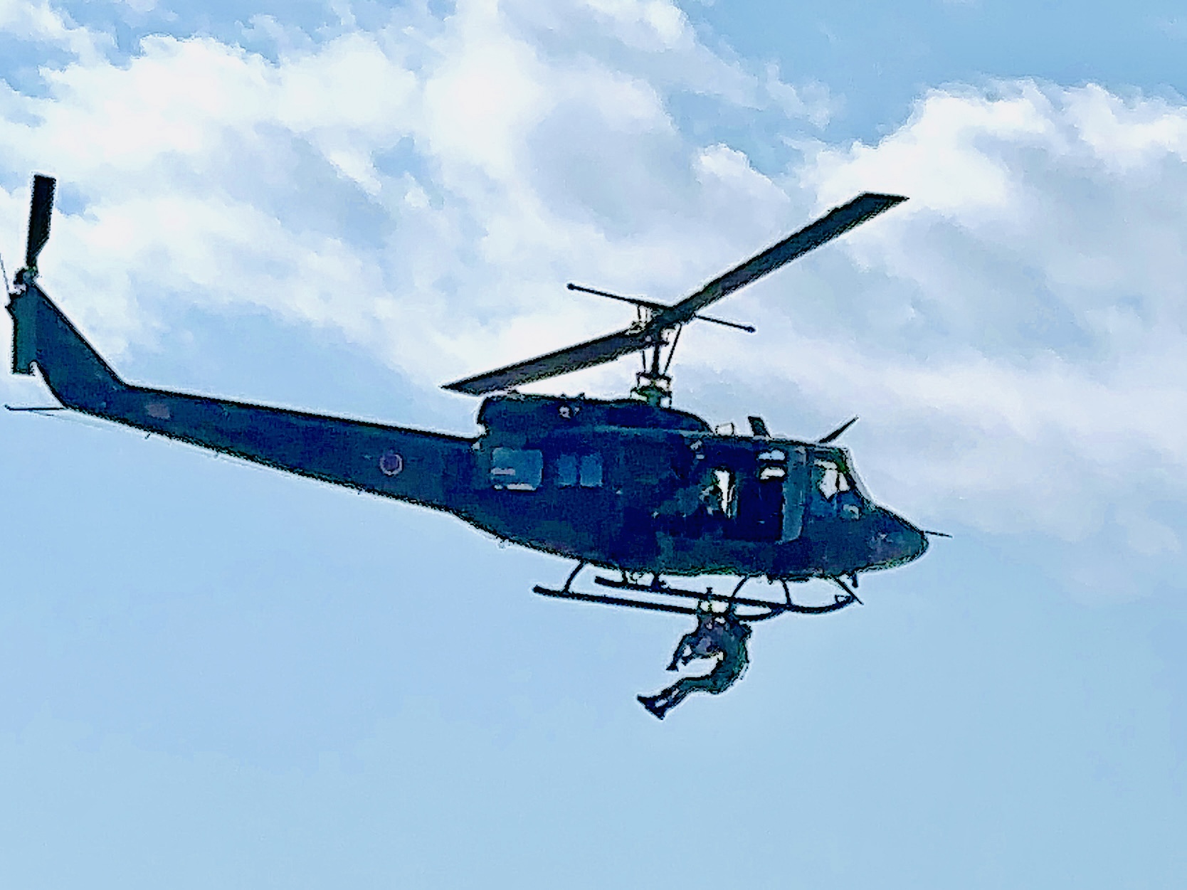 UH-2は、長年活躍してきたUH-1Jの後継として開発された最新多用途ヘリです。ローターブレードが2枚から4枚に増え、エンジンも単発から双発式に改良され、飛行性能と安全性が向上しました。