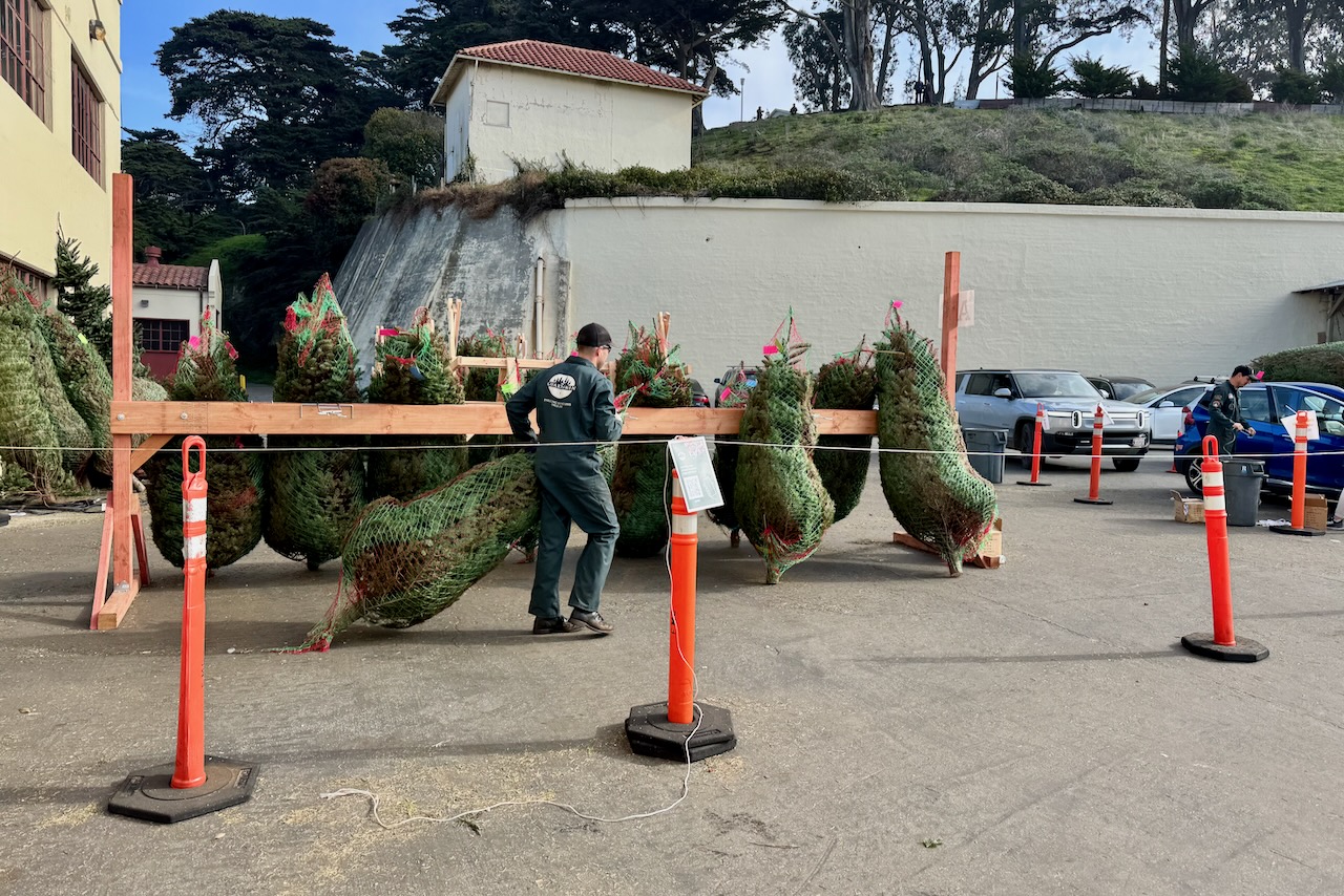12月7日、記録的な寒さだったというサンフランシスコ。プレシディオ・フォートメイソンで開催されていた慈善団体「ガーズメン」による恒例のクリスマスツリー販売。朝の冷たいグレーの空と午後からは穏やかな昼下がり、パビリオンの中は木の香りと人のにぎわいがホリデー前の冬の日曜日ならではの光景でした。