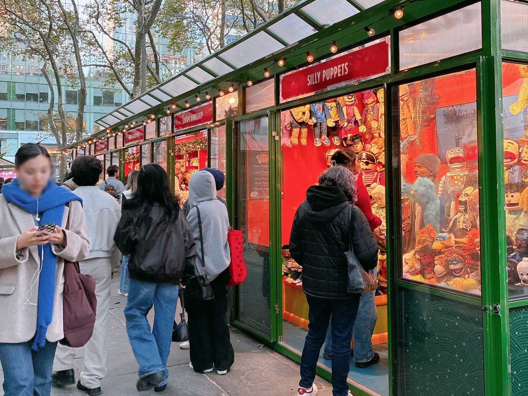毎年クリスマスシーズンが近づくと設営されるのが、ブライアントパークの「ウィンタービレッジ」。普段は広々として人々の憩いの場となっているこの公園ですが、この時期になるとホリデーマーケットが立ち並び、まるで映画の世界みたいな雰囲気に。
