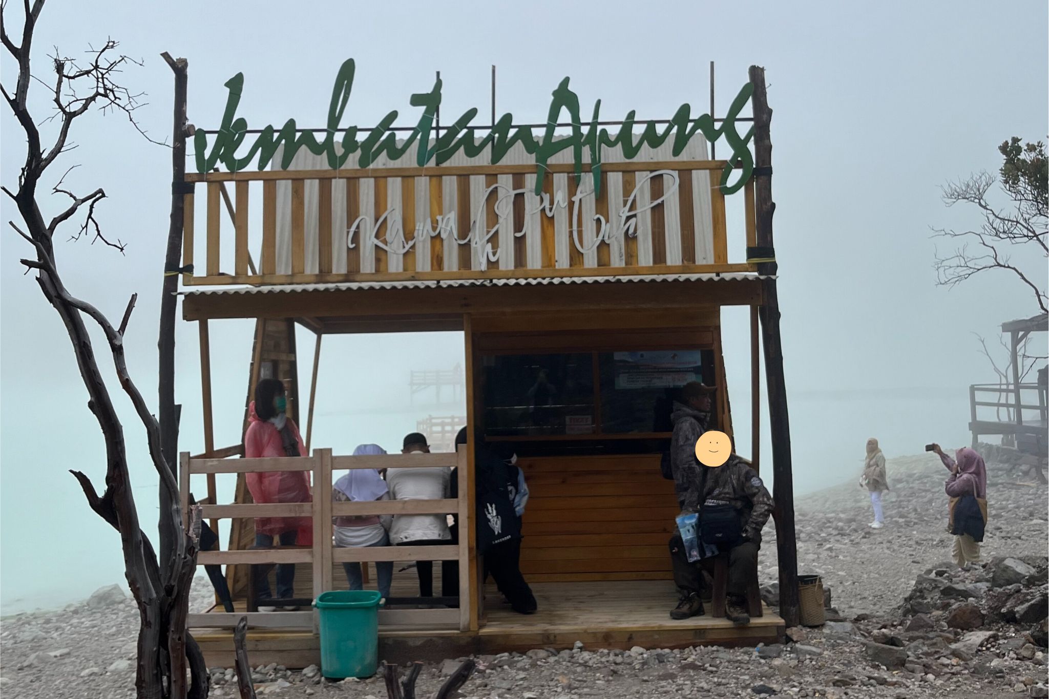 火口湖の入場口付近には、硫黄のにおい対策のためかガスマスクを売っている人もいて驚きます。入場してみると、ガスマスクが必要なほどの硫黄のにおいではないため安心します。おそらく日本の大涌谷で感じる硫黄のにおいの方が強烈ではないでしょうか。硫黄のにおいがする温泉も日本にはいくつかあるため、温泉のにおいと大差がないと感じられます。