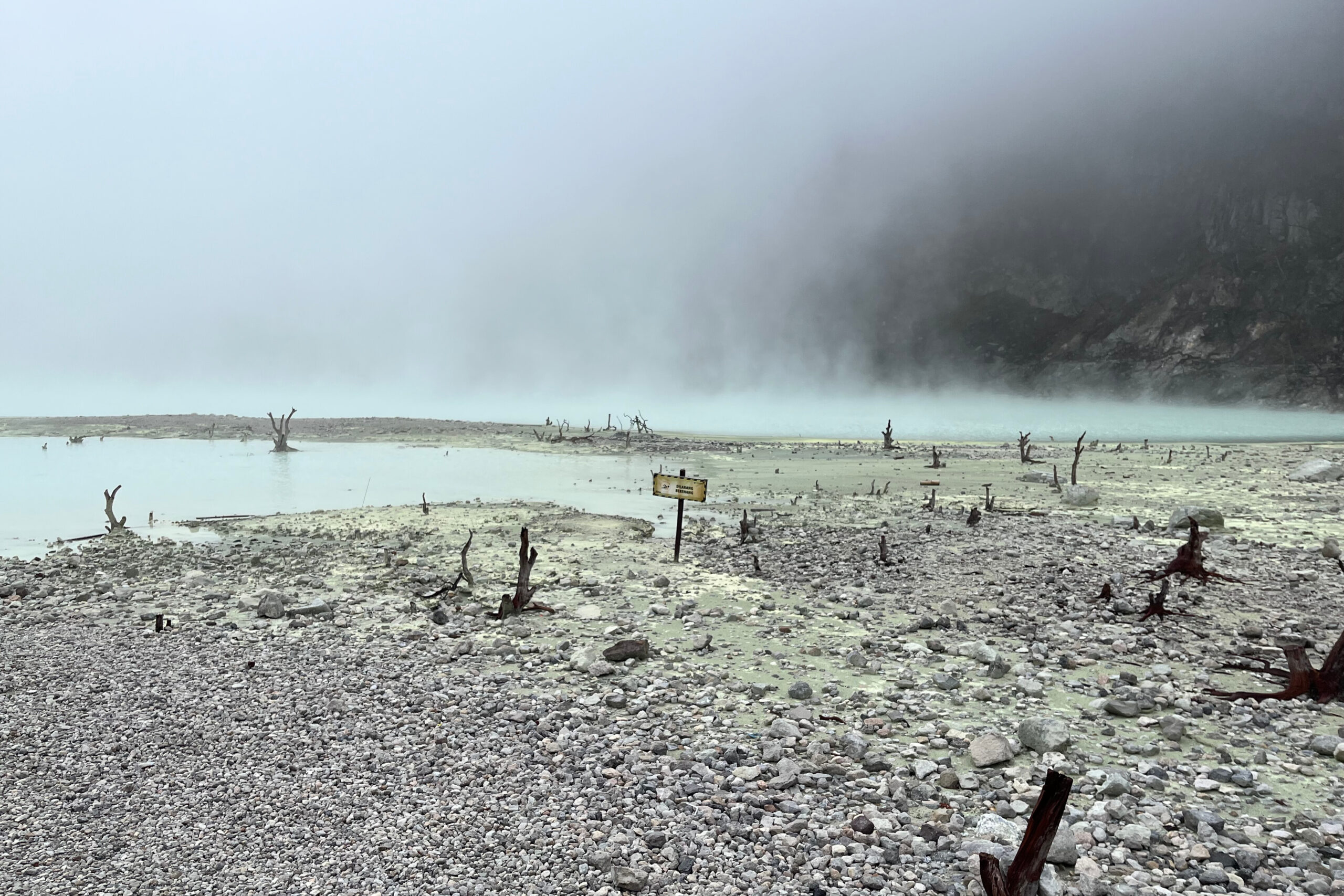 バンドゥン市内から車で2~3時間進んだ先にKawah Putih(カワ・プティ)と呼ばれる、白い火口湖はあります。硫黄の蒸気が立ち込める神秘的な景色を一目見ようと多くの人が集まります。