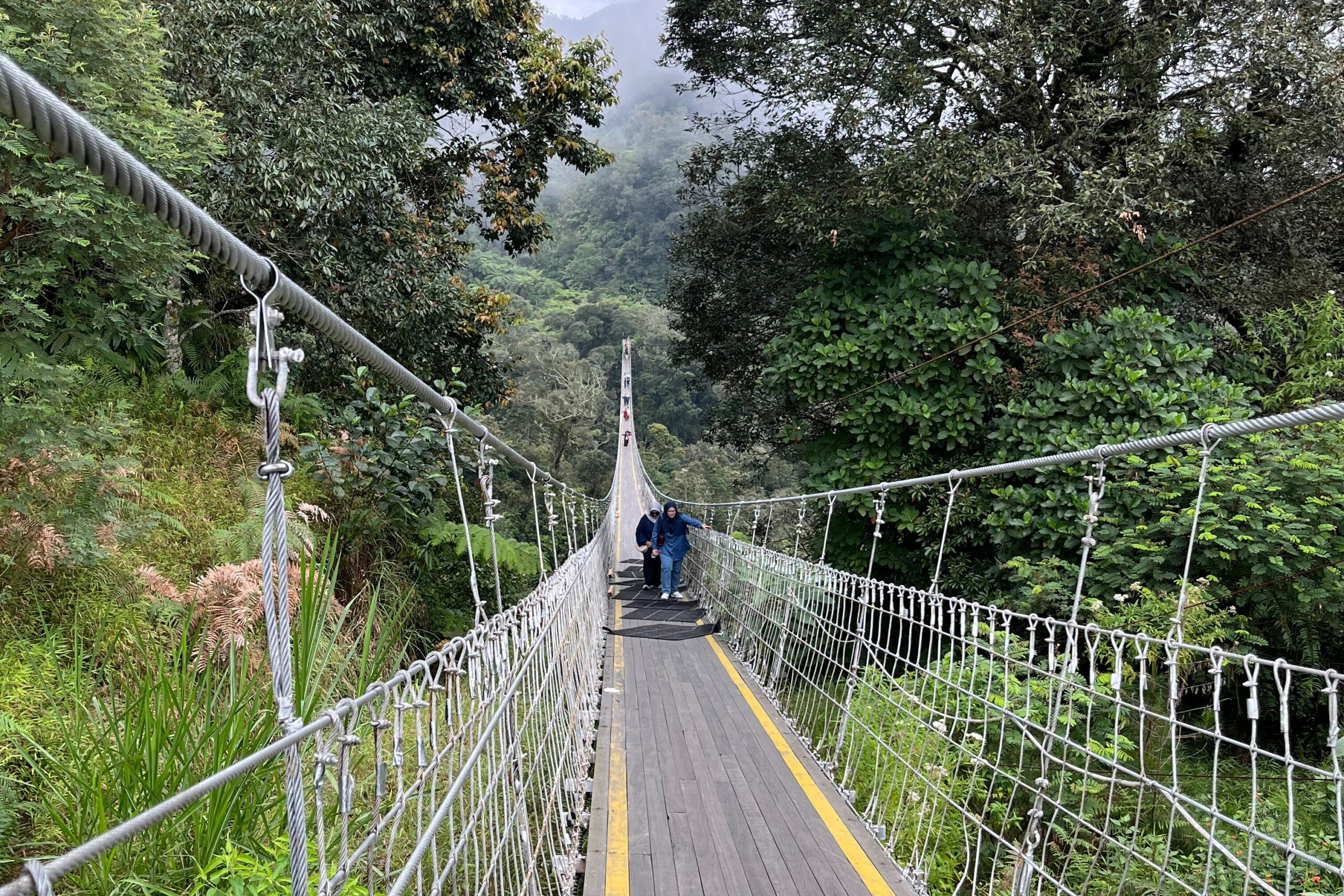 最初にRengganis Suspension Bridge(レンガニス吊り橋)という東南アジア最長の橋を渡らなくてはなりません。吊り橋の高さは、なんと370メートル!足元には豊かな森林が広がっています。