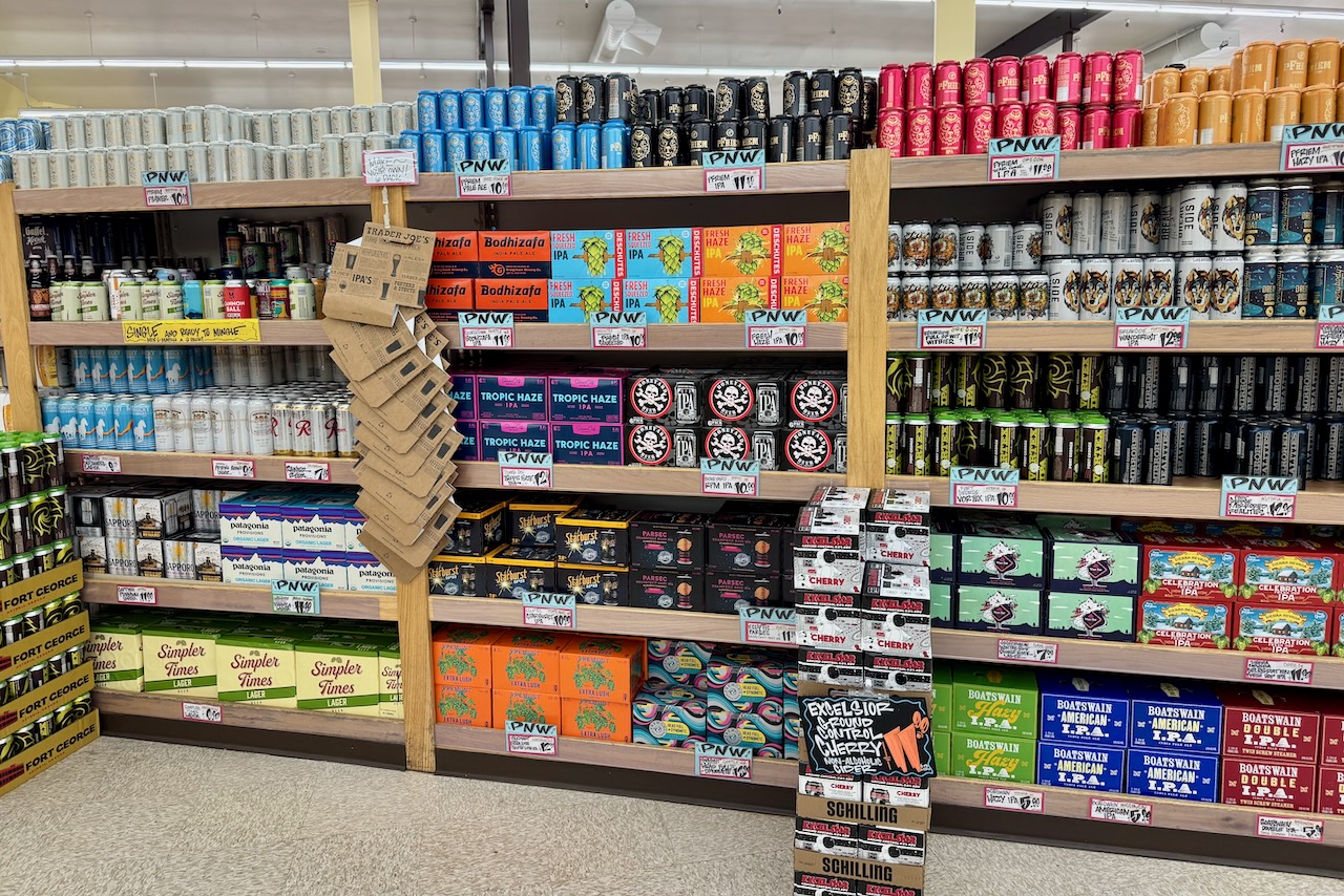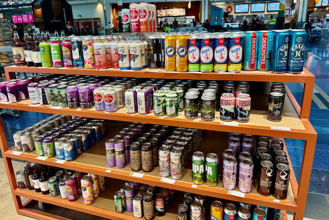 ポートランド国際空港(以下PDX)の売店を歩いていると、棚に並ぶ顔ぶれが少し変わってきたことに気づきます(市中もしかり)。人気だった8〜9%の高アルコールビールよりも、爽やかなウェストコーストIPAを中心に、ピルスナーやラガーといったややアルコール度数が低く軽やかで、食事に合わせやすいスタイルが目立つ。今年の流行をひと言で表すなら「やっぱり普通がいいかも」。ガッツリ系のビールに少し疲れたビアラバーが、気負わず飲める日常の一杯へと戻ってきたのかもしれません。PDXのビアホールでも、黄金色で透明感のある軽やかなビールを手にしている人が多い。アルコール感と香りのバランスがよく、何杯でも飲めそうなビール。クラフトビールは再び、“旅の途中で気軽に飲める存在”へと立ち位置を変えつつあるように感じます。