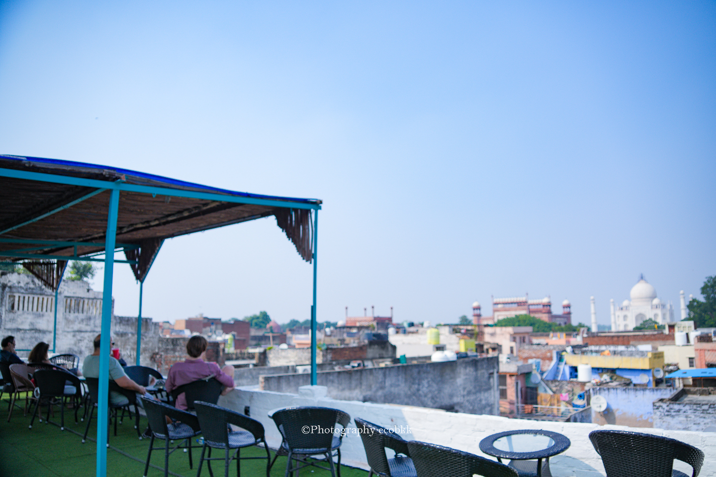 大気の状態が悪いシーズンでも、以前紹介したホテルのルーフトップバーよりも、タージ・マハルに近いので、タージ・マハルが見えやすいです。