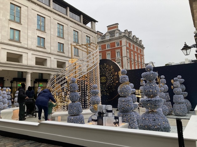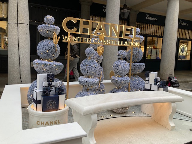 屋内マーケットの周囲でも毎年この季節になると、必ずポップアップが現れるコヴェントガーデン。2025年はシャネルの「ウィンター・インスタレーション」が目をひきます。