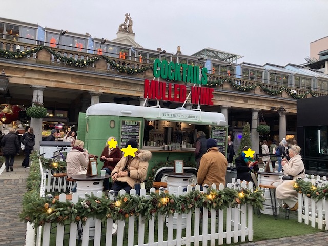 一年中いつ行っても人々で賑わうコヴェントガーデンですが、クリスマスはまた特別な雰囲気に満ちています。