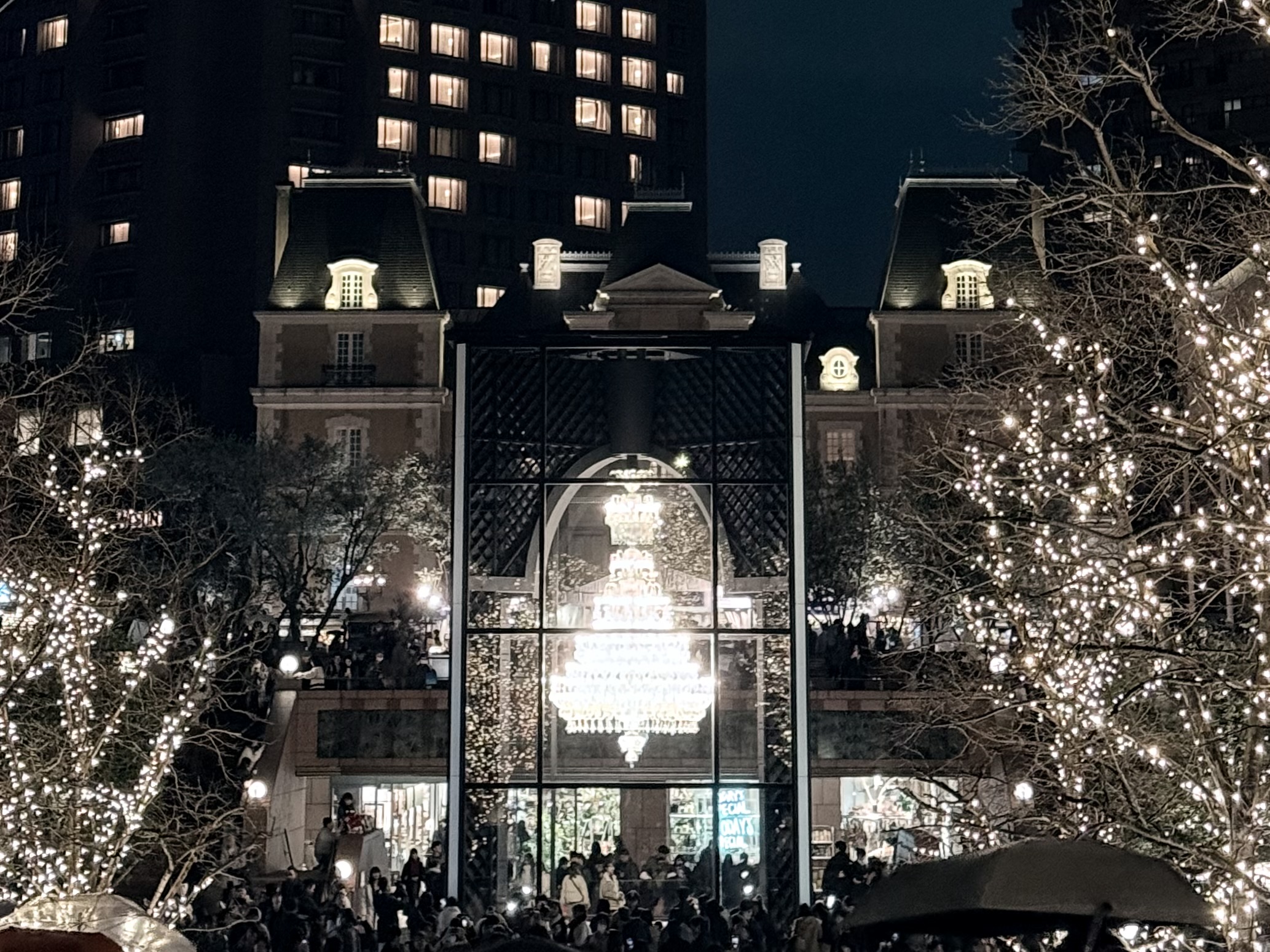 クリスマス時期の恵比寿ガーデンプレイスは、イルミネーションのほか、クリスマスマルシェの開催、豪華なバカラのシャンデリアが展示しているのです。