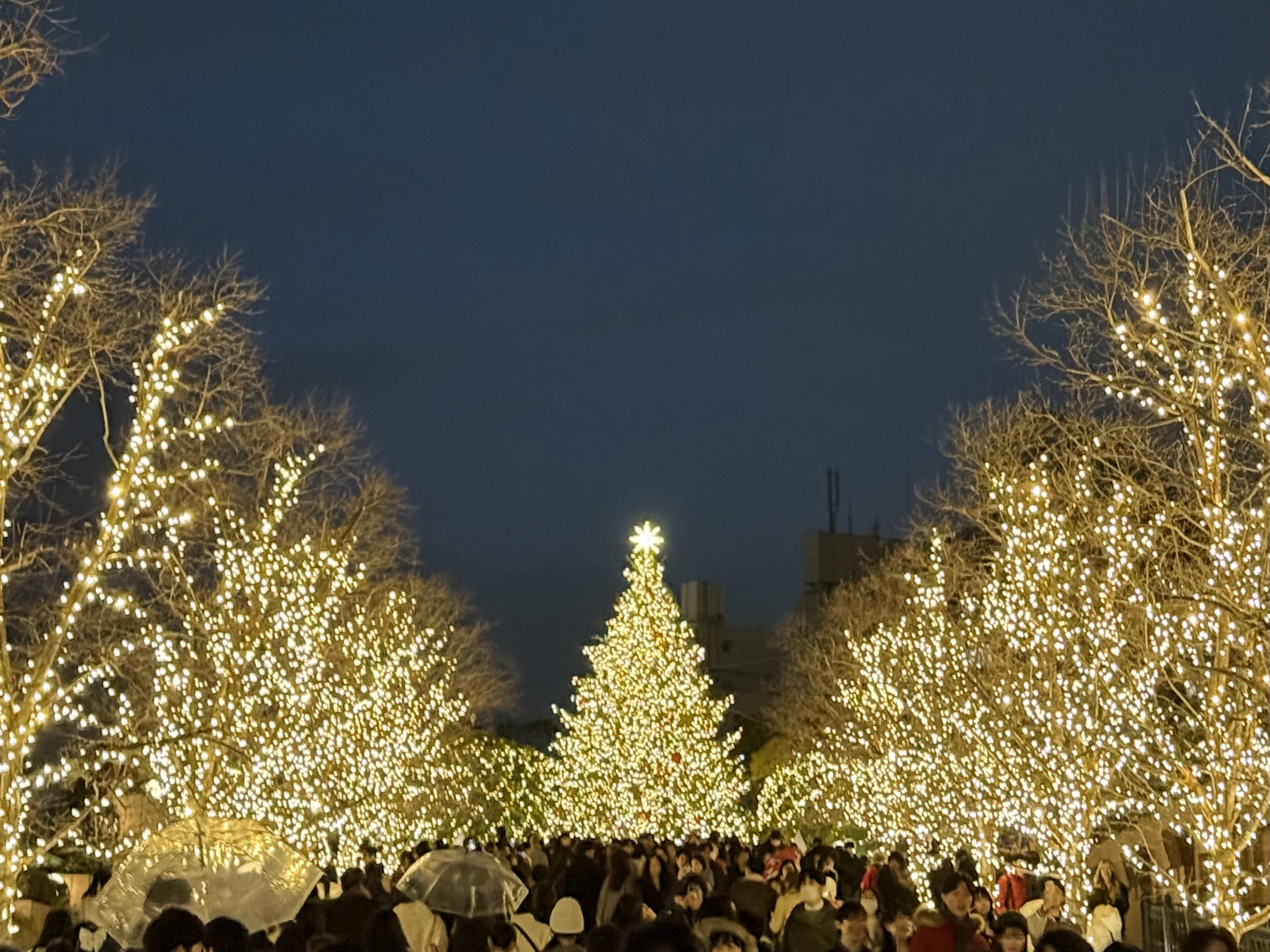 恵比寿ガーデンプレイスでは、約10万球あるシャンパンゴールドの灯りが華やかに彩っています。