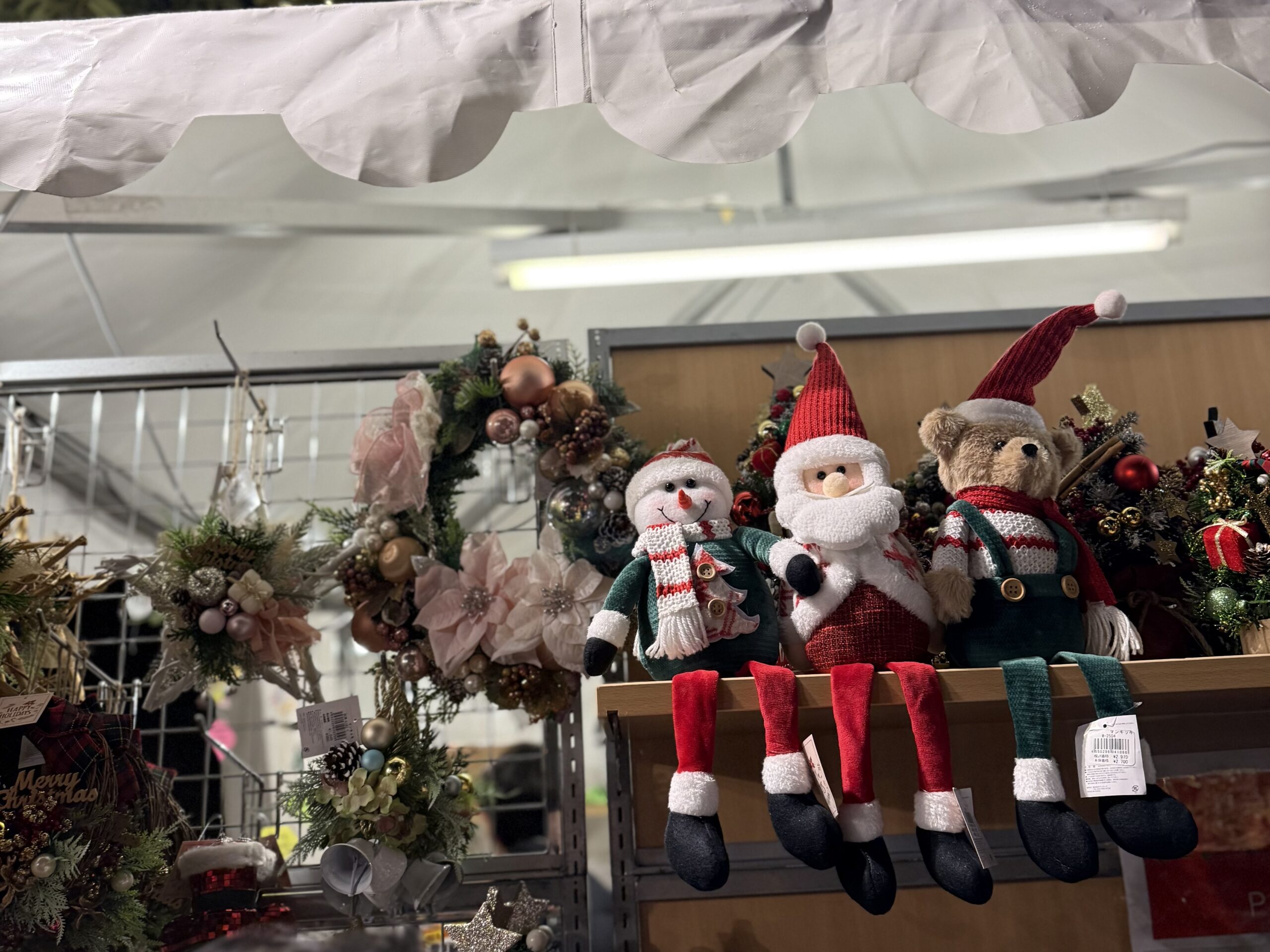 サンタクロースの置物やクリスマスリース、スノーマンなど見ているだけで楽しめるアイテムが揃っています。
