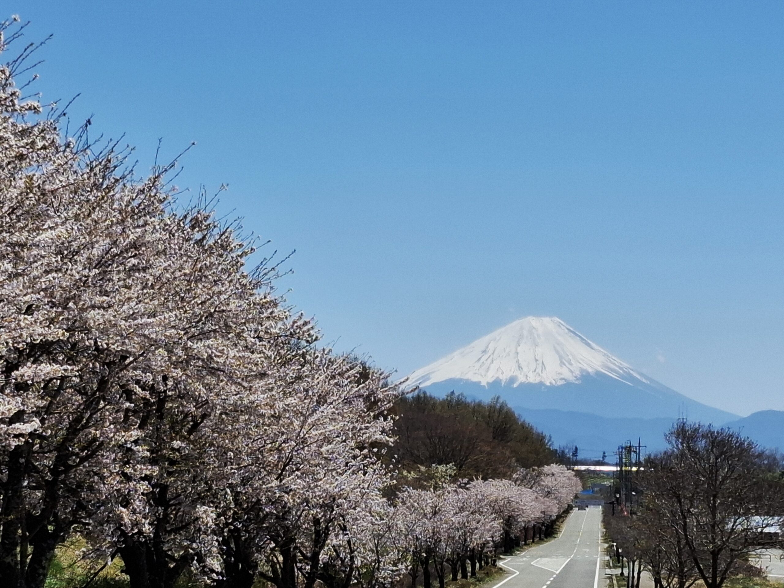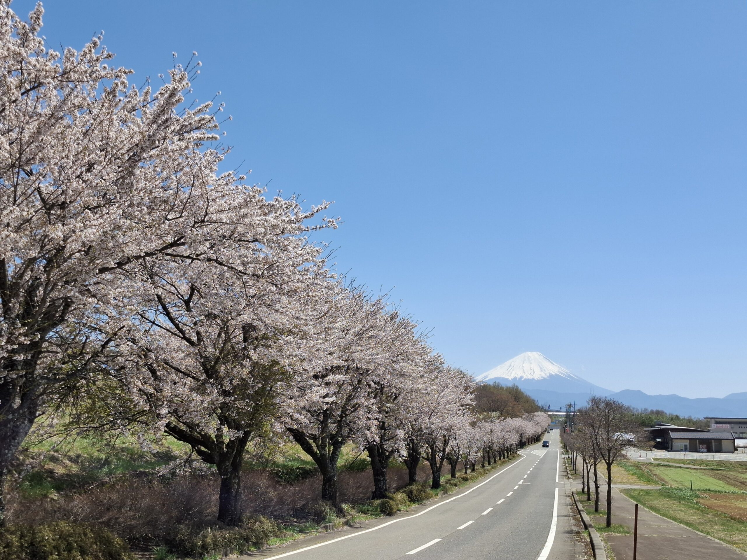4月。桜と富士山です。北杜市明野町「ハイジの村」近くの農道で。ハイジの村は、バラの時期がおすすめのフラワースポットです。