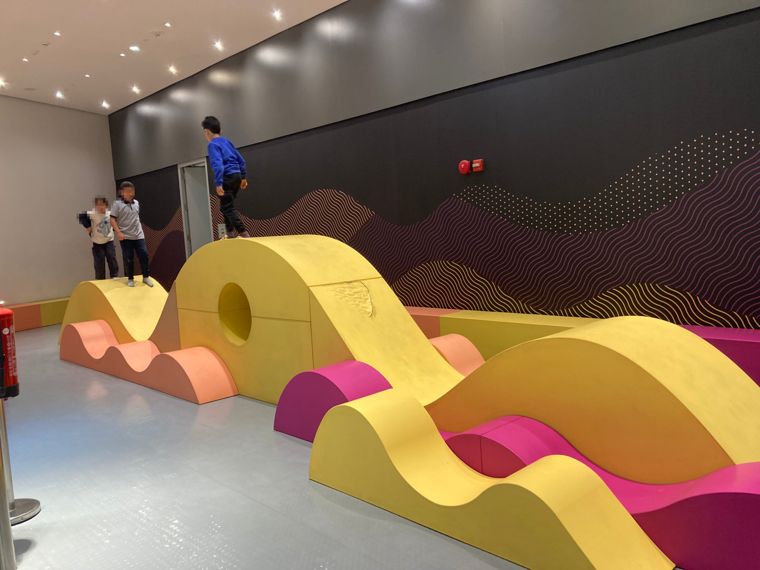 どこのエリアからもアクセスしやすいちょうど真ん中にあるので、両親のどちらかがここで子供を見て、交代で一般の展示を見学するのにとても便利です。