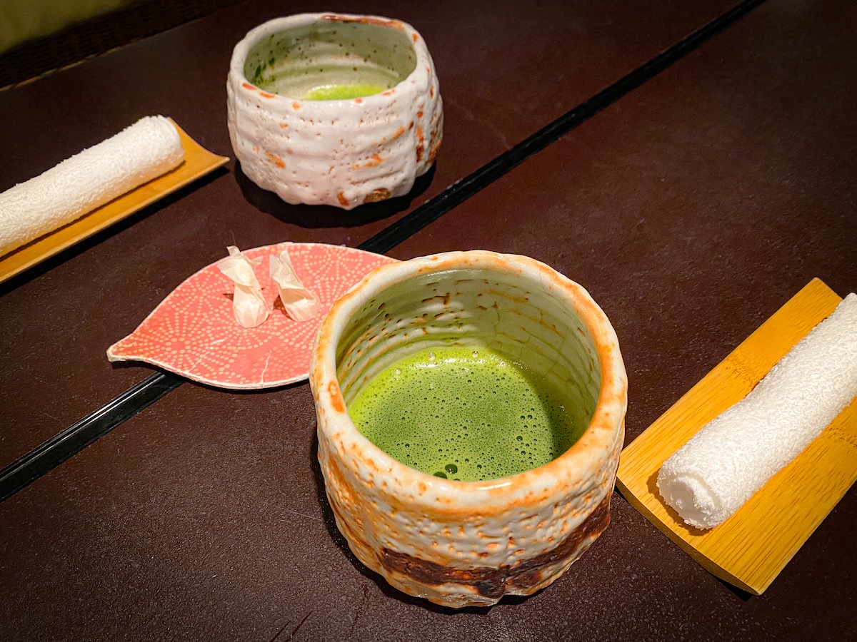 お宿に到着すると、嬉しいお出迎えが待っています。まずはウェルカムドリンクとして登場するのがお抹茶。添えてある和三盆が上品な味わいで、旅の疲れた体に染み渡ります。