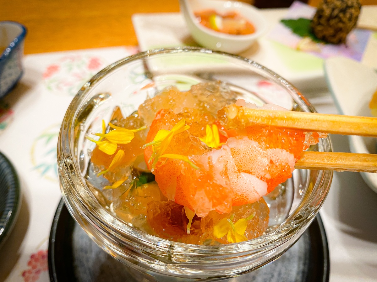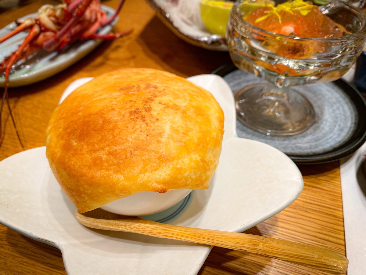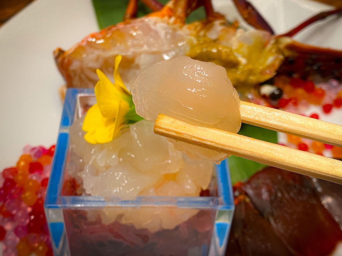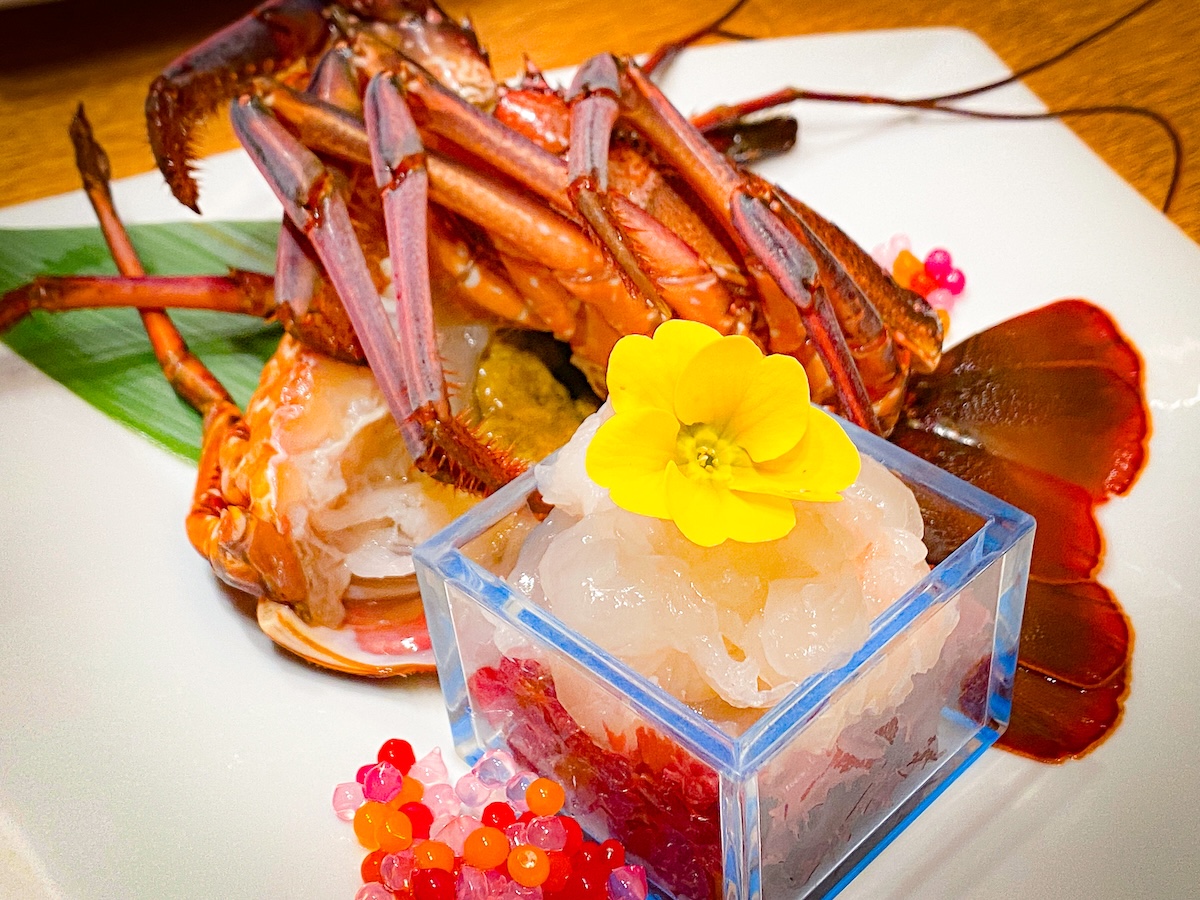 豪華な伊勢エビもダイナミックにいただきます。プリッとしつつも引き締まった身は「さすが!」の一言。思わず日本酒と合わせたくなってしまいます。