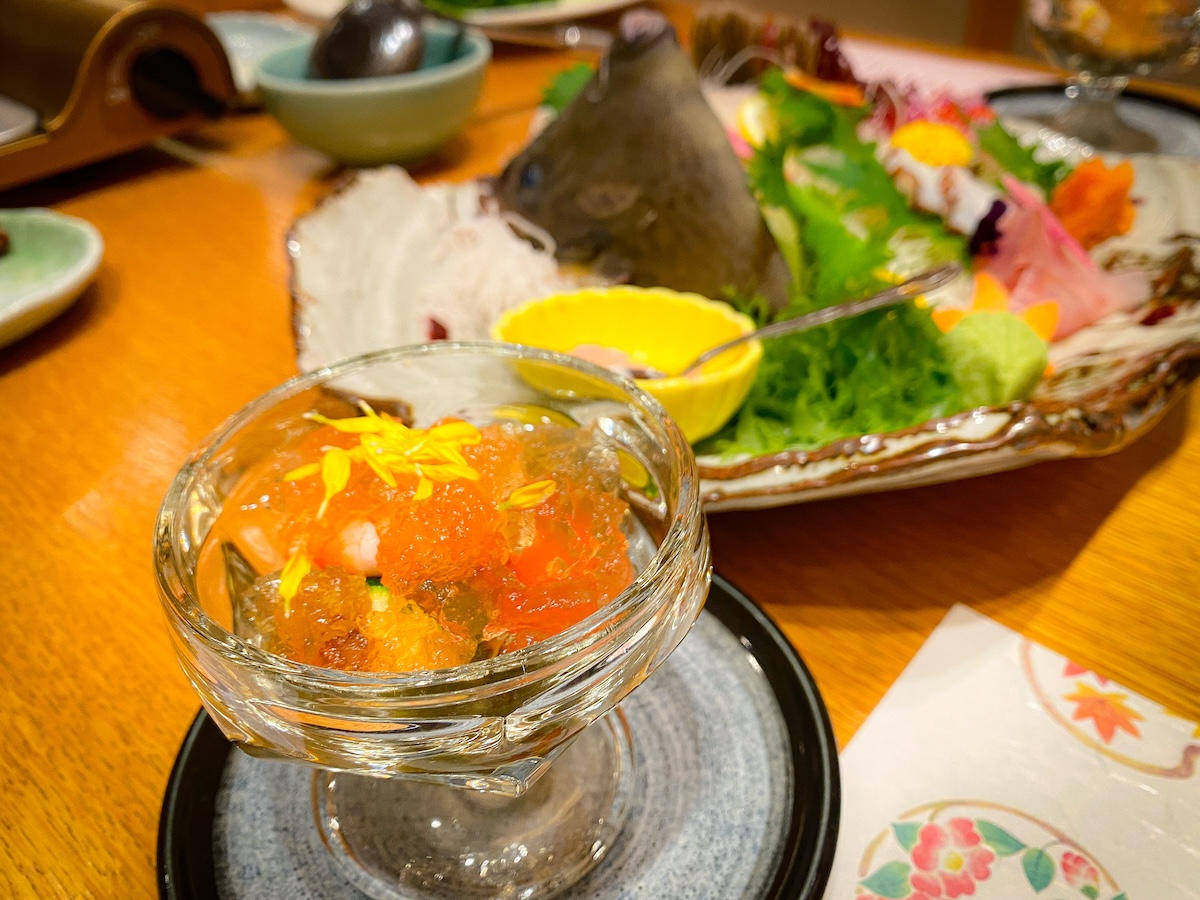今回は鳥羽の地酒と合わせていただきました。辛口でありながら、スーッと馴染んでいく味わいで、どんどん進んでしまいます。