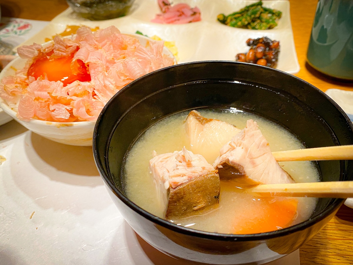 あら汁はゴロッと大きな身が入っていて、これだけでも大満足!漁師飯と合わせれば、1日のパワーチャージが完了です。鮮度の高い食材が叶えてくれる至福のひととき。