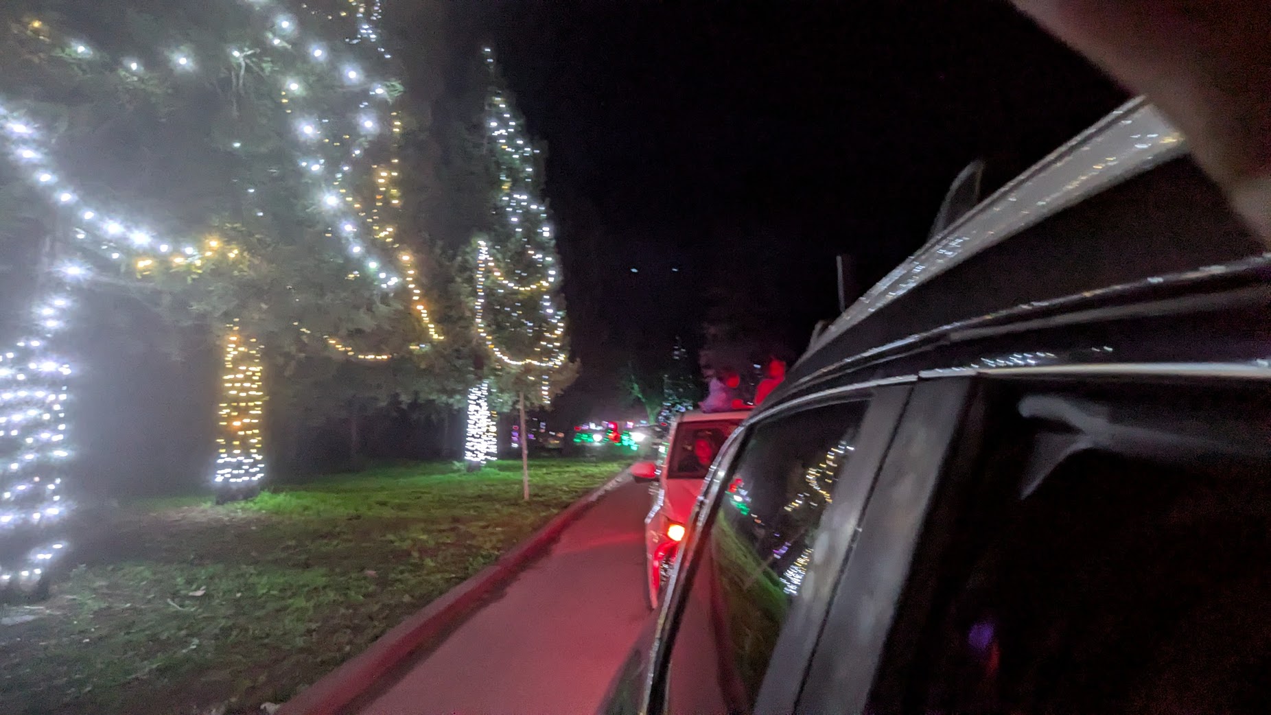12月初旬の数日間のみ。車を降りて、間近に近寄ってオブジェを見たり、サンタさんと写真を撮ることができます。フードトラックも出て、お祭り気分が味わえます。