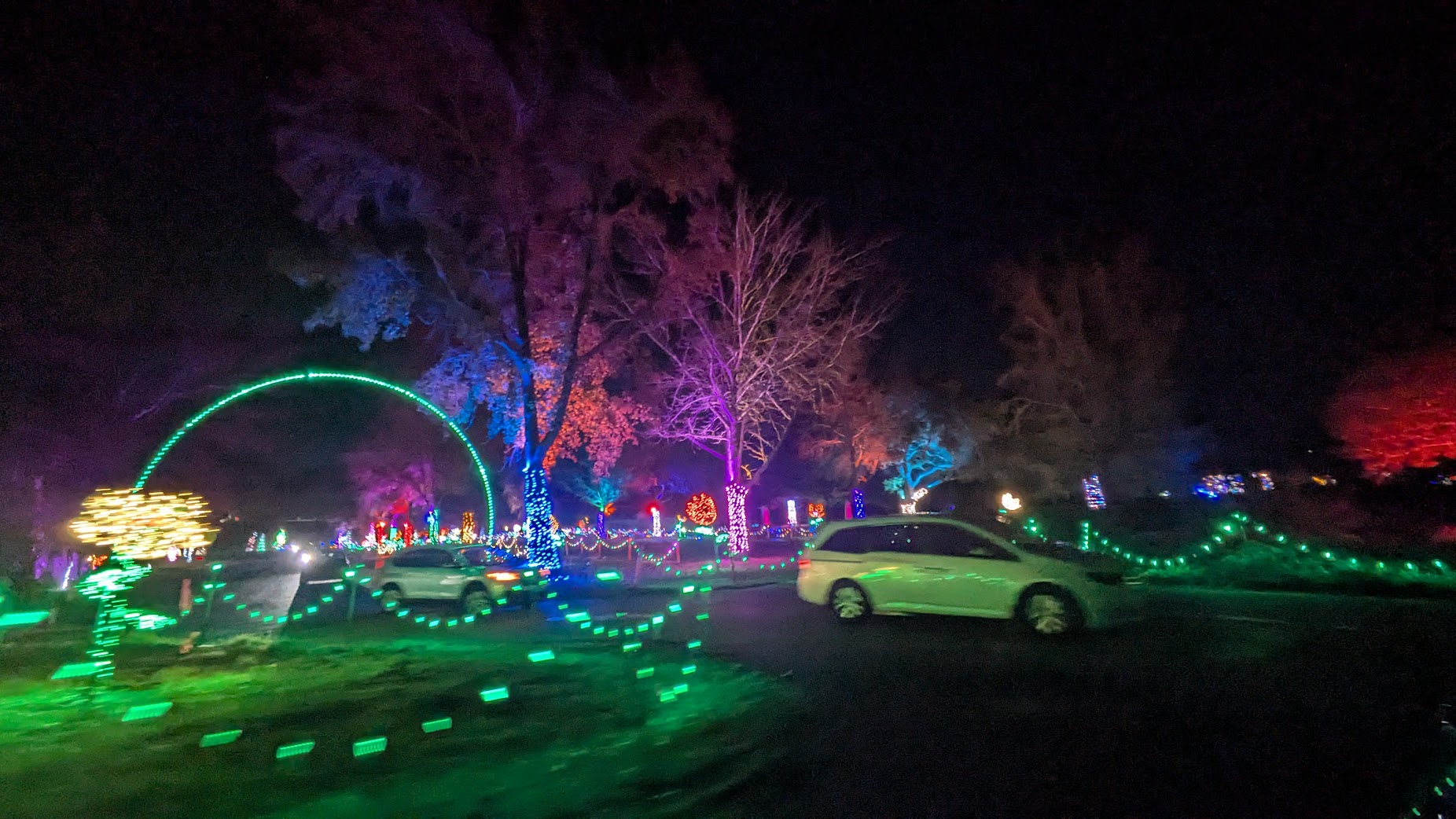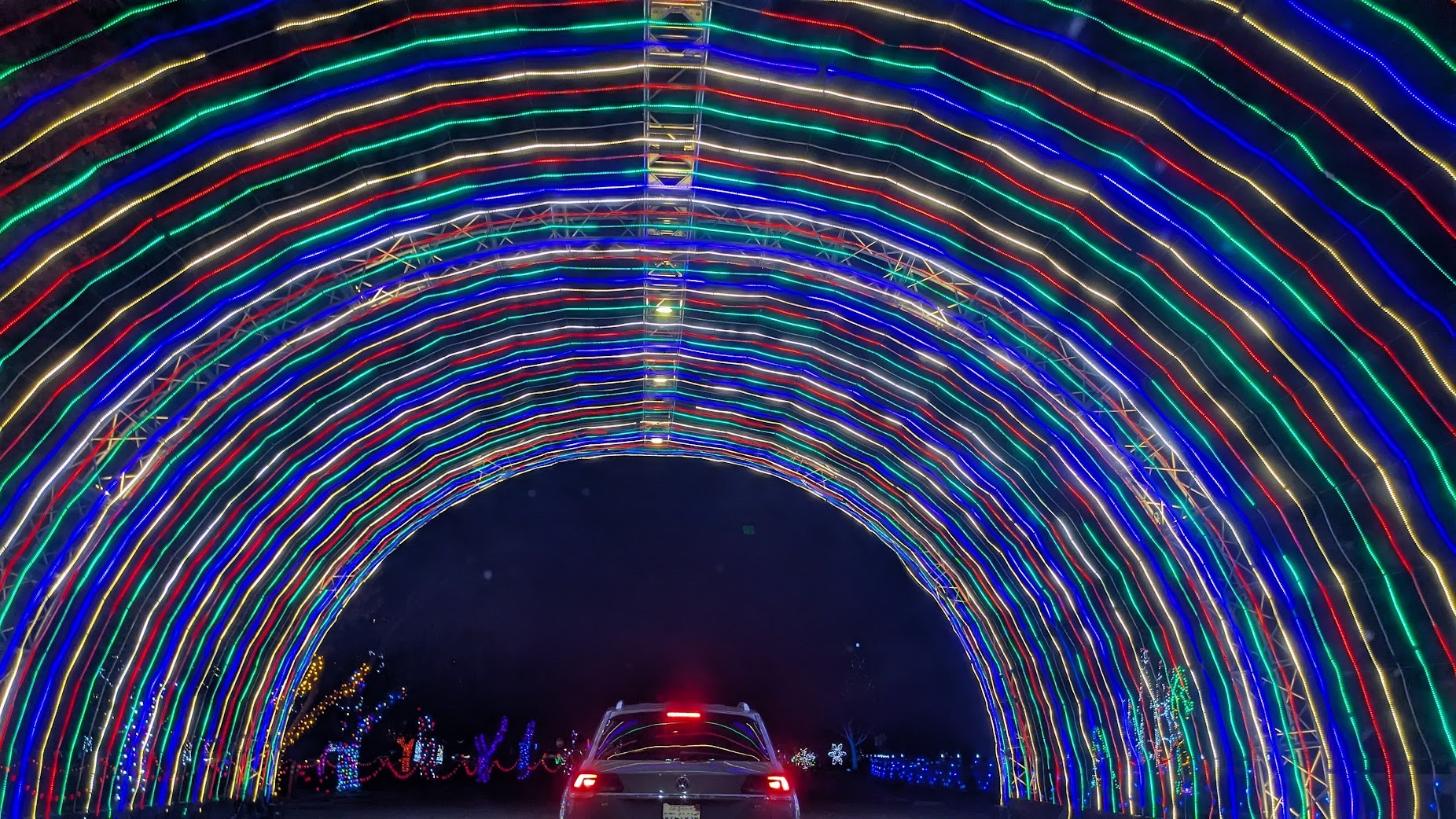 1.5マイルの光の回廊: 公園内のドライブコース沿いに、50以上の巨大な光のディスプレイが並びます。