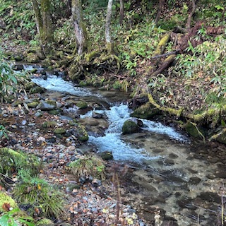 露天風呂の側を流れる小川、心地よいせせらぎを聴きながらまったり入りました。