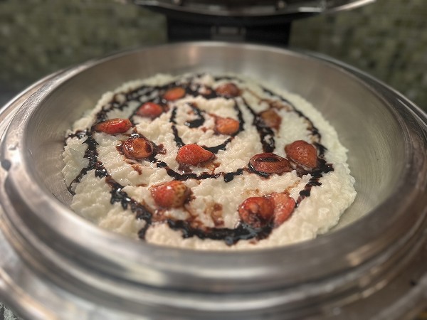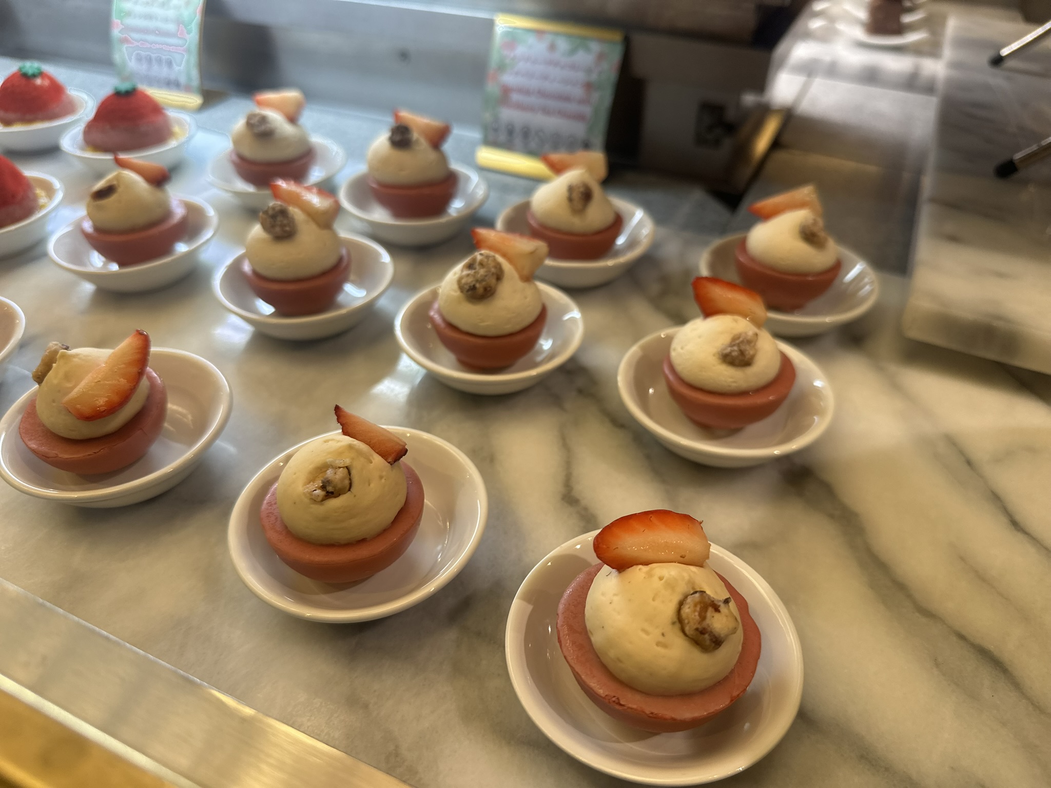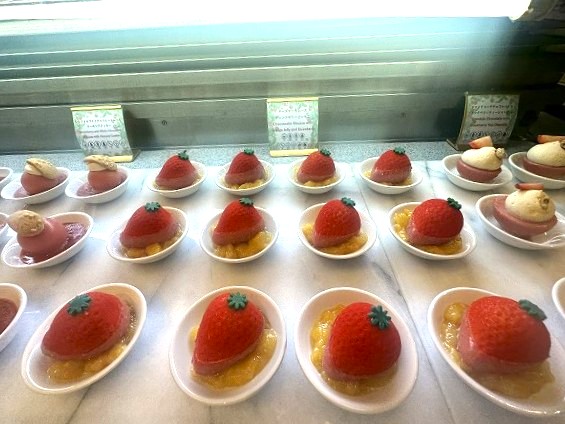 ブッフェ台には、その日一番のフレッシュ苺が2種並びます。スイーツに添えても、そのまま味わっても、苺本来の香りと瑞々しさが際立ち、全体の満足度を底上げしてくれます。