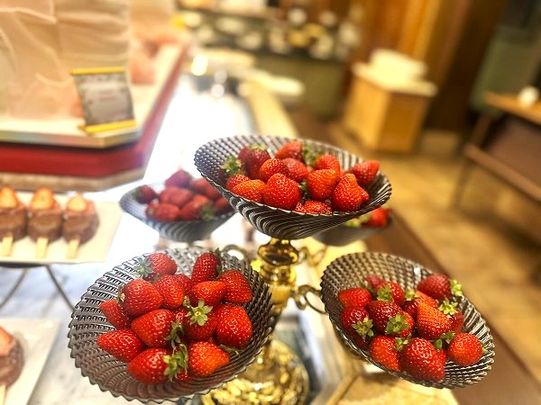 フレッシュ苺の食べ放題に、完成度の高いホールケーキや多彩なスイーツ、ライブデザート、セイヴォリーまで揃う内容はさすがフォーブストラベルガイド「ホテル部門」で大阪唯一の五つ星ホテルとして名高いザ・リッツ・カールトン大阪。