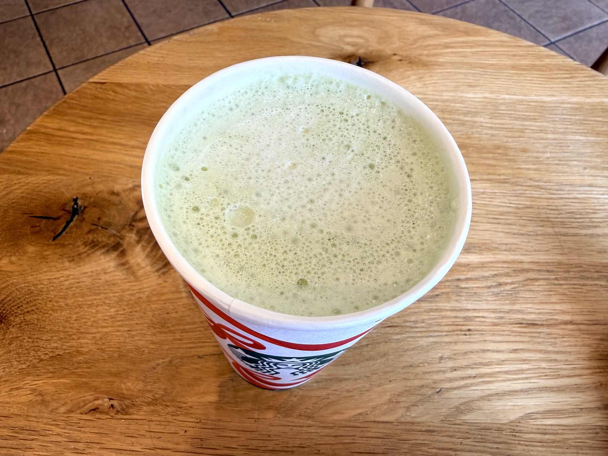 私は、トール(スモール、350ml)のアイスで注文。バナナのほんのりとした甘さに抹茶のフォームミルクがよく合います。プロテインの味はしないので、プロテインが苦手な人も大丈夫です。バナナ+抹茶+プロテイン入りというヘルシードリンクは朝やハイキングなどの運動の後にも楽しめそうです。